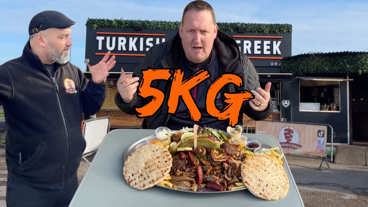 Want right here we go how are you right not manad M how are you good you very well thank you very well so I’ve come down been recommended to try out this massive Kebab plat that you’ve got how big is it we got the 5 kg