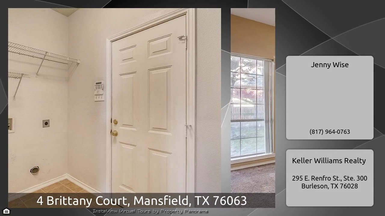 The Virtual Tour for the property at 4 Brittany Court, Mansfield, TX 76063 listed for $275,000: Other homes for sale by Jenny Wise of Keller Williams Realty: Lovely 4 bed, 2.1 bath home in the Walnut Creek Valley neighborhood. This home sits in a quiet cul-de-sac in the highly sought after Mansfield school district. Tons of features in this home including the study with french doors, formal dining, and the living room has an awesome pellet wood-burning fireplace that heats the entire house! This home also has a central vacuum system and the exterior walls all have extra insulation. The …