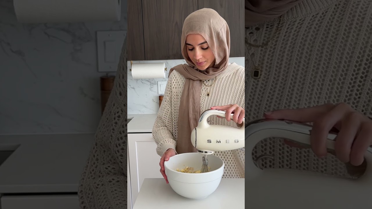 As frer pan with almond flour eggs sugar heavy cream vanilla extract almond extract and lots of butter beet together until you have a beautiful smooth consistency just like this and then we’re going to take our bio and cut it into thick slices transfer to a baking sheet brush generously with a simple