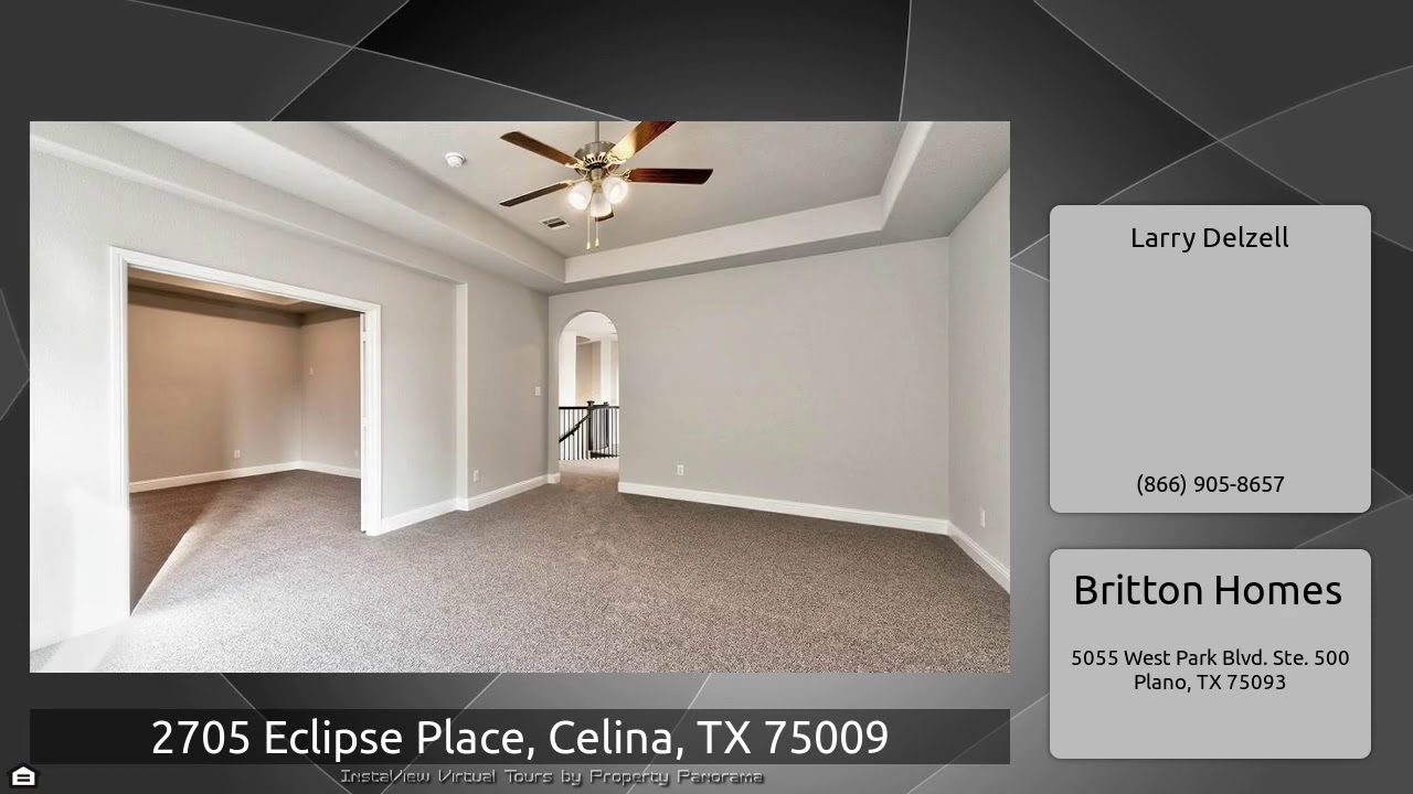 The Virtual Tour for the property at 2705 Eclipse Place, Celina, TX 75009 listed for $579,900: Other homes for sale by Larry Delzell of Britton Homes: BRITTON HOMES NEW CONSTRUCTION READY FOR MOVE-IN! Entry with 22-foot ceiling. Library with French doors set at entry. Formal dining room. Family room with a corner fireplace and wall of windows. Kitchen features an island with built-in seating space, spacious walk-in pantry and butler's pantry. Secluded master suite with wall of windows. Double door entry to master bath with dual vanities, garden tub, separate glass-enclosed shower and two …