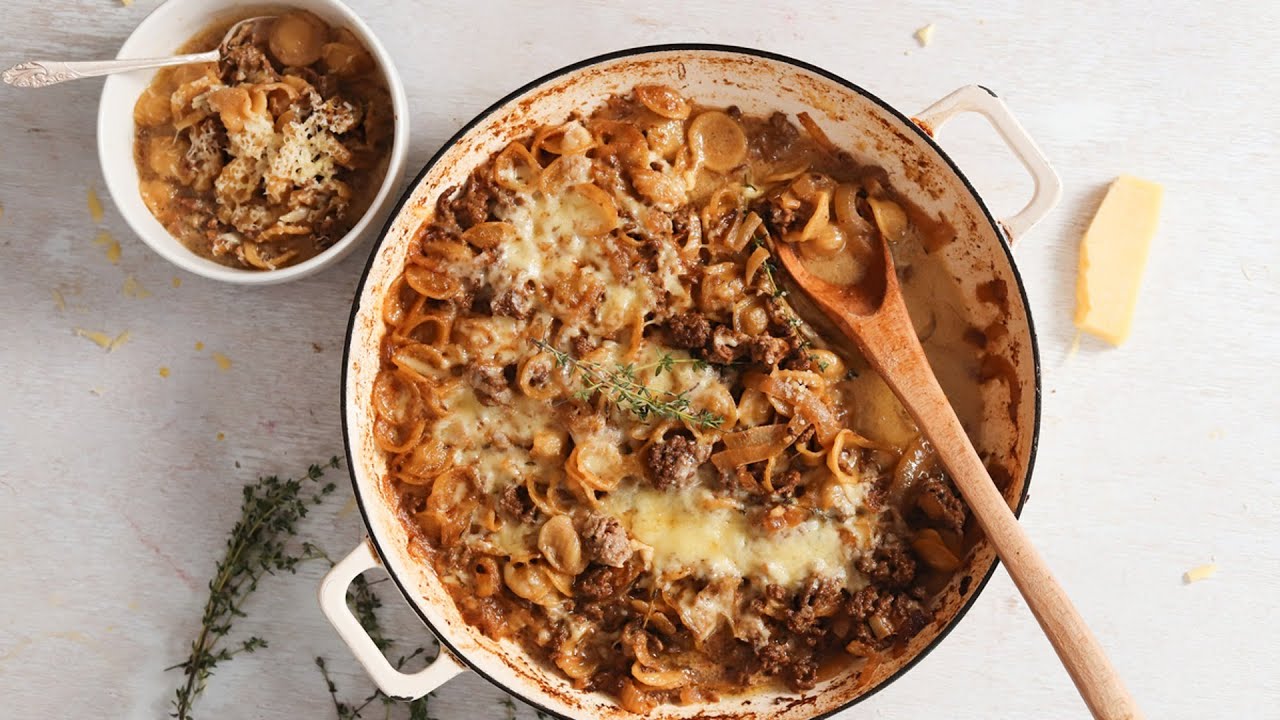 You know the classic soup and this recipe turns in into an even heartier dish with the addition of ground beef and orecchiette. This filling meal is just as comforting as the original.