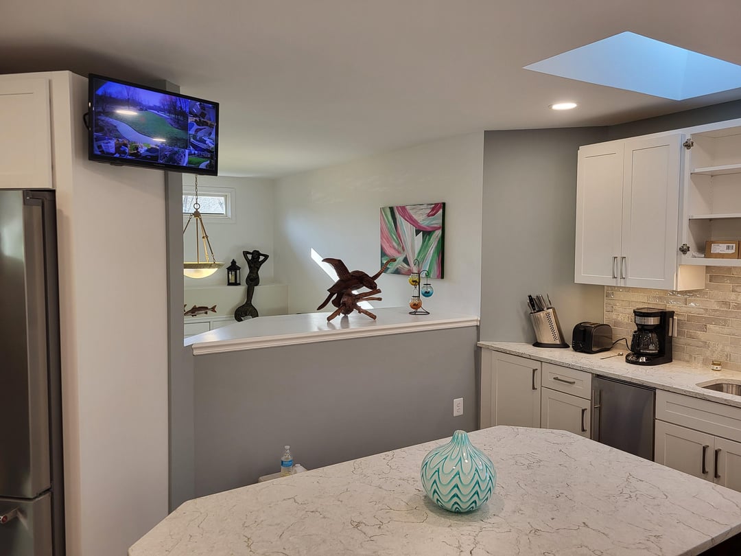 pleasesolvefory 2 years ago Beautiful. Also, I’m patiently waiting for the “TV too high!” comments.What kind of appliances did you go with?