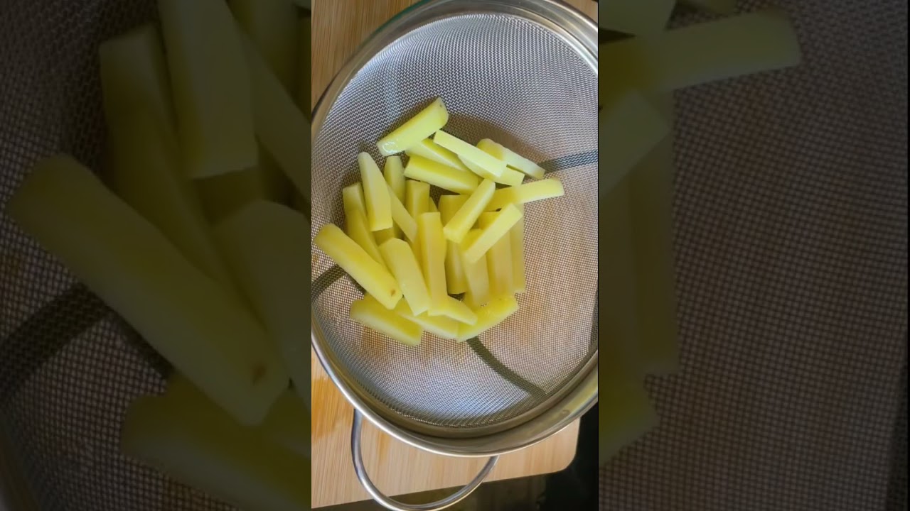 आलू को किसी सूखे कपड़े या टिश्यू से ना सुखाना जरूर वरना गर्म तेल में जाने के बाद तेल फटने लगेंगे तो इस चीज का जरूर ध्यान रखना तो फ्रेंच फ्राइस बनाने के लिए ना आलू को मैं दो बार फ्राई कर रहा हूं दो बार फ्राई करने से ना फ्रेंच फ्राइस