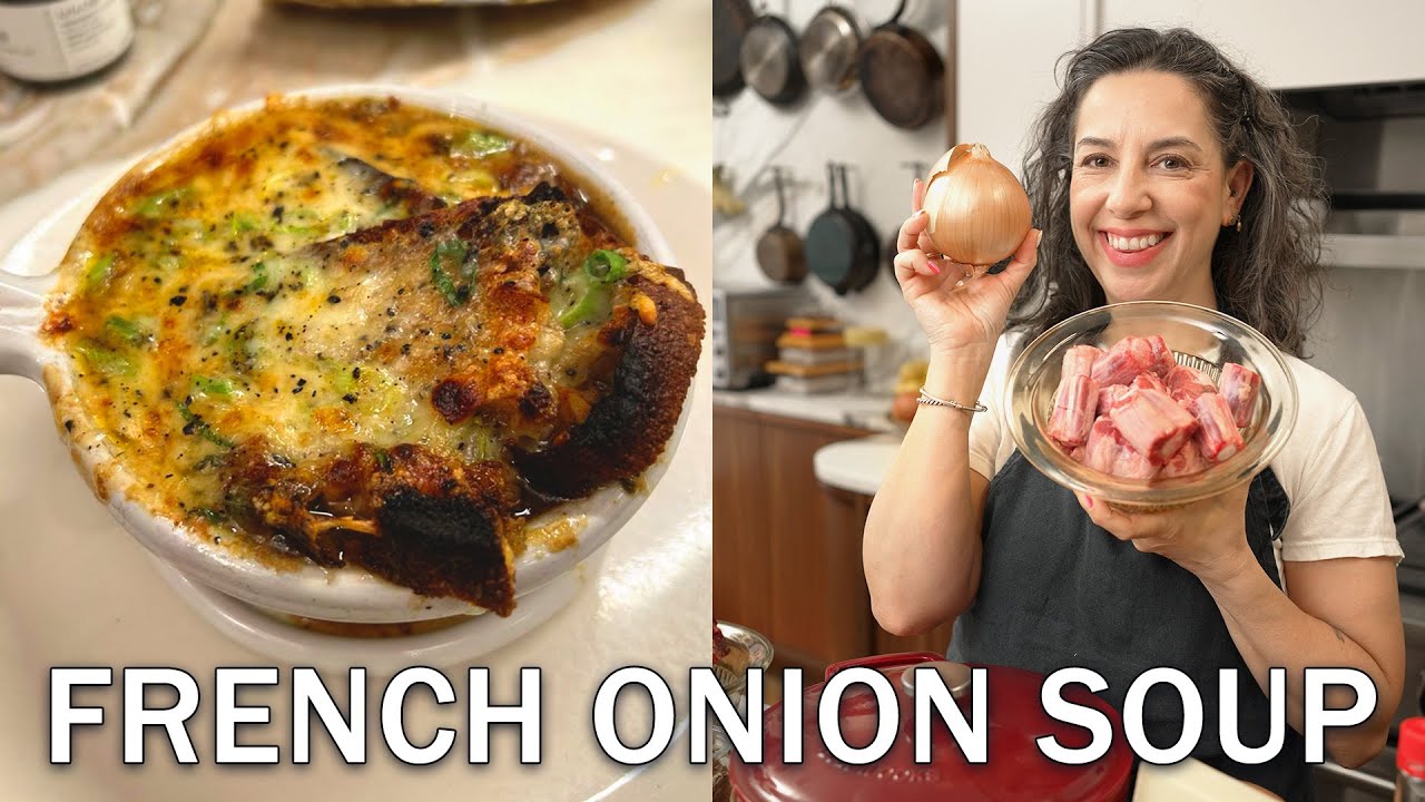 I watched lots and lots of french onion soup videos looked at a bunch of recipes and my number one beef is at a certain point they just tell you to grab two chord of delicious homemade beef stock but nobody tells you how to make it so for my recipe I developed an extremely