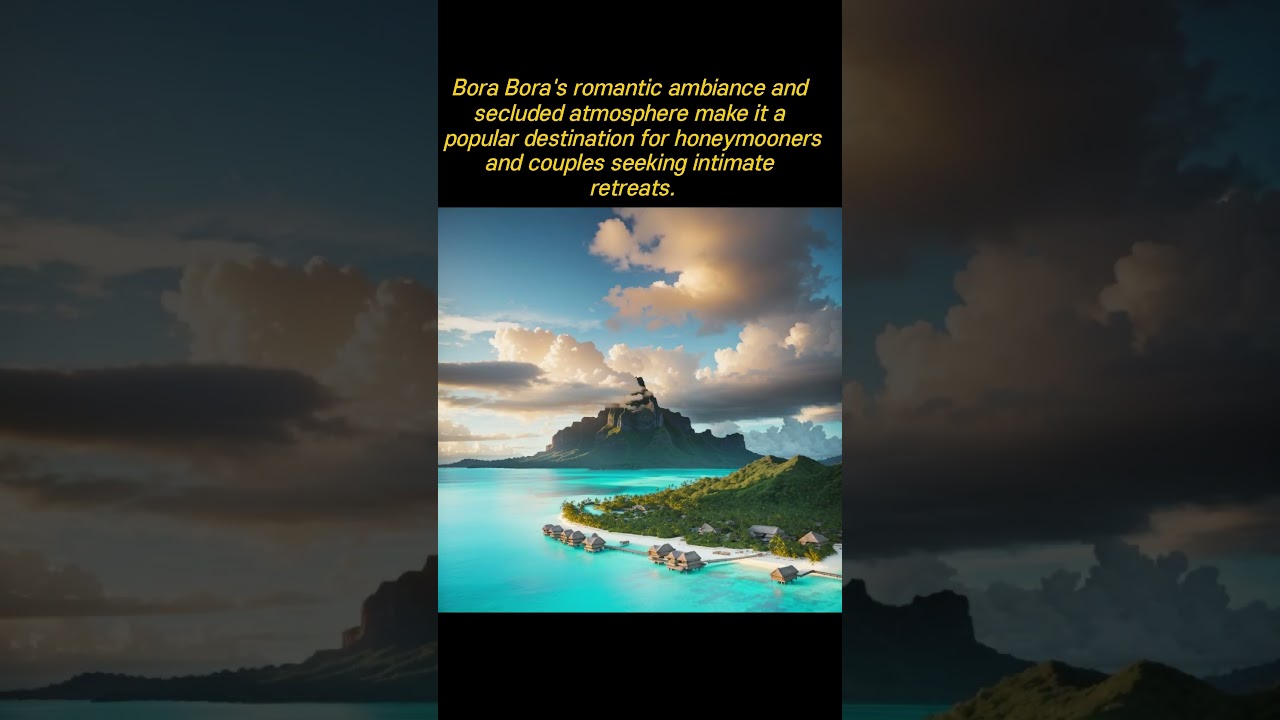 Bora Bora in French Polynesia is famous for its beauty and luxury. With pristine beaches, clear waters, and iconic overwater bungalows, it’s a haven for snorkeling and romance. The island’s coral reefs offer rich marine life, while its upscale accommodations and gourmet dining cater to luxury travelers seeking relaxation and indulgence in a tropical paradise #shorts