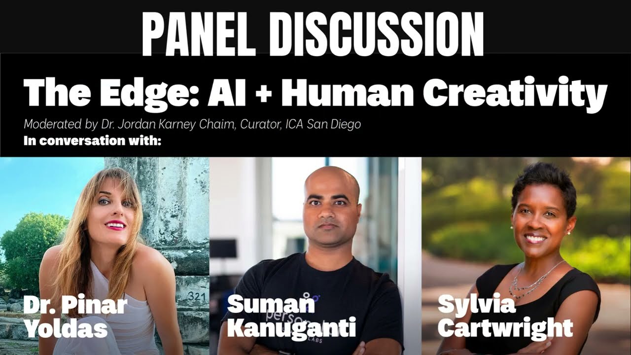 ICA San Diego Director Andrew Utt moderated a conversation featuring artist Pinar Yoldas, Sylvia Cartwright, MD, and Suman Kanuganti, Co-Founder and CEO of Personal.ai.