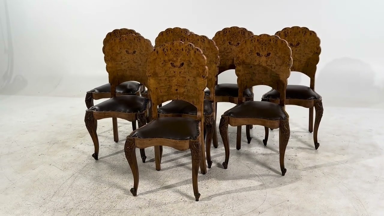 https://midcenturywarehouse.com/mid-century-french-burlwood-dining-chairs-set-of-8/Mid Century French Burlwood Dining Chairs – Set of 8Each chair measures: 20.25 wide x 22 deep x 39.25 inches high, with a seat height/chair clearance of 19 inches BurlwoodChairsCuisineDiningFranceFrenchfrench cuisineFrench diningSetVideoVlogYouTubeWrite A CommentYou must be logged in to post a comment.