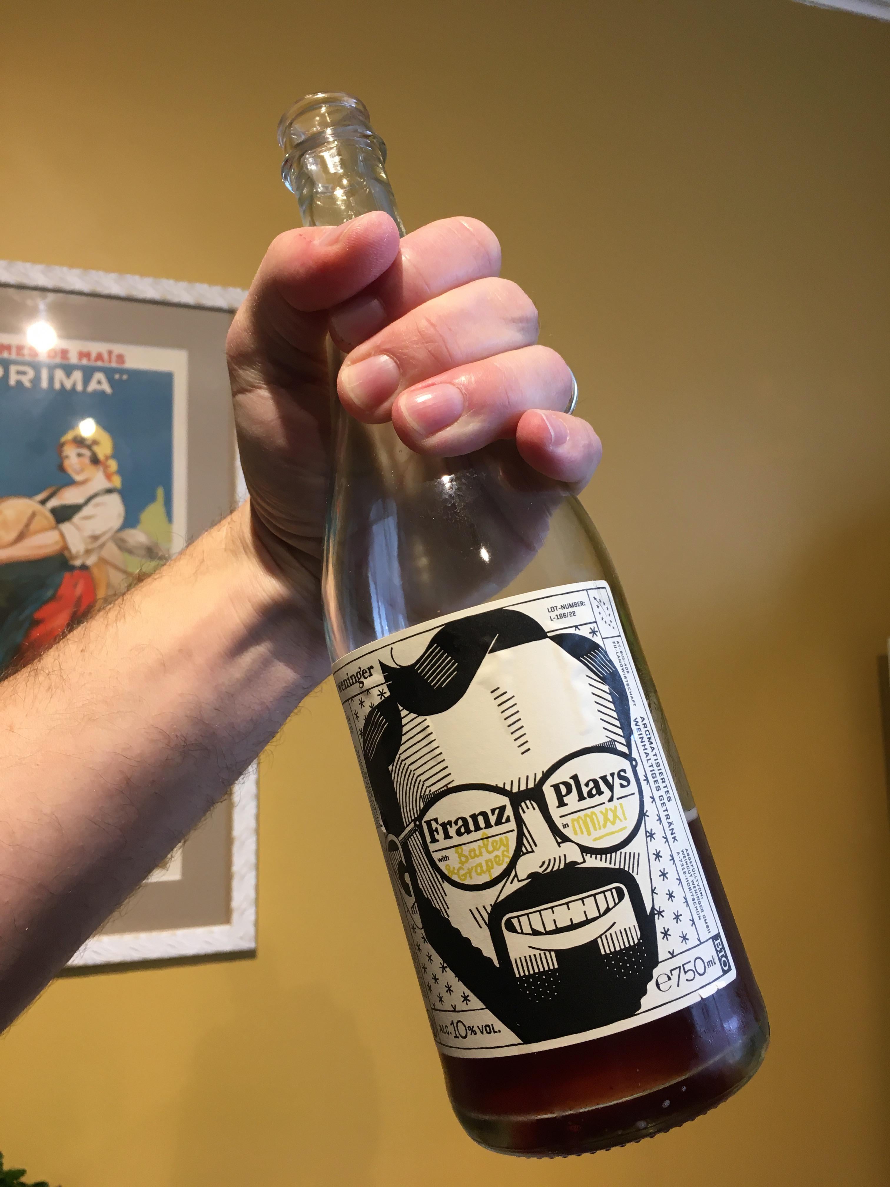 Going fast, had to snap a quick photo before it was too late. Some wine, some barley, bubbles… slightly bitter finish and no hops. Served cold, will drink again. So fun.