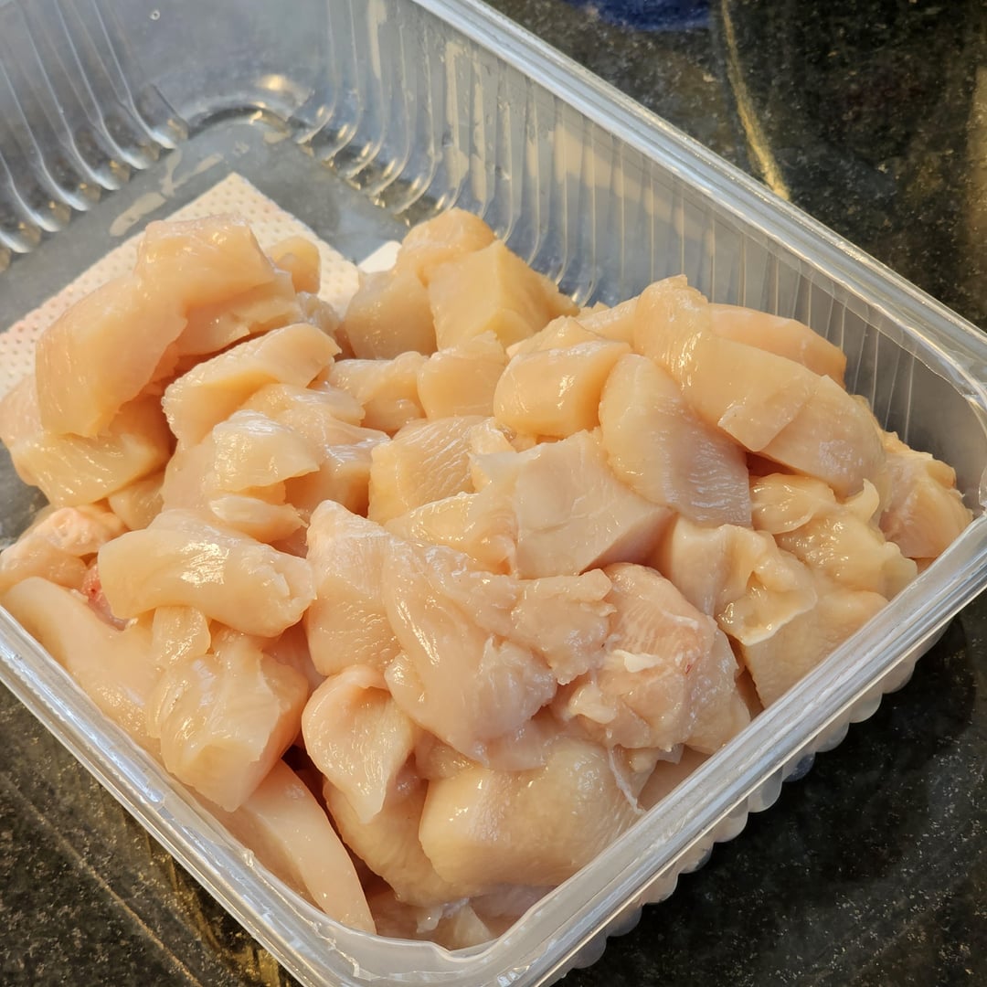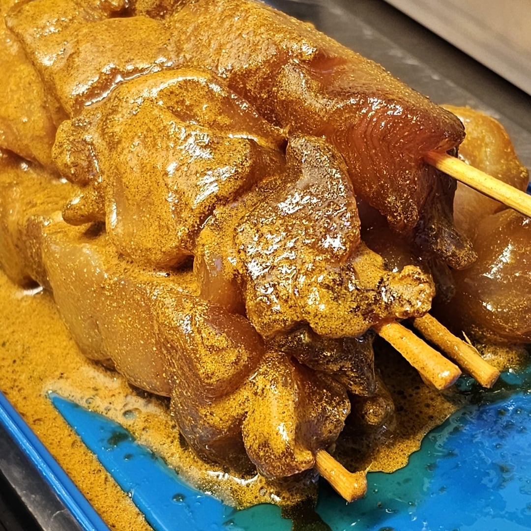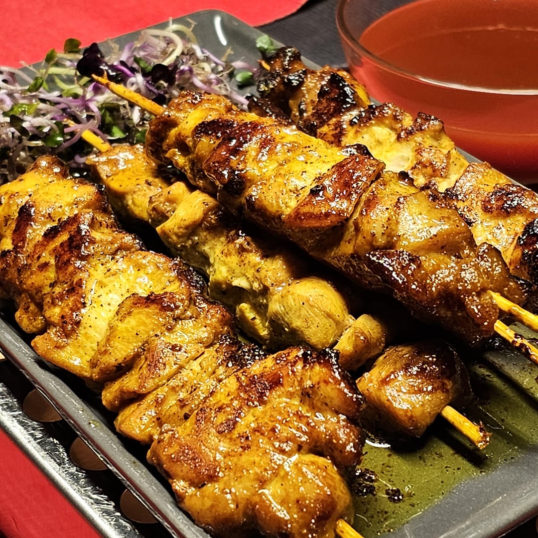Satay chicken breast with plenty of satay sauce, served with salad and strawberries (instructions in the gallery, read from right to left, needs marinated over night)