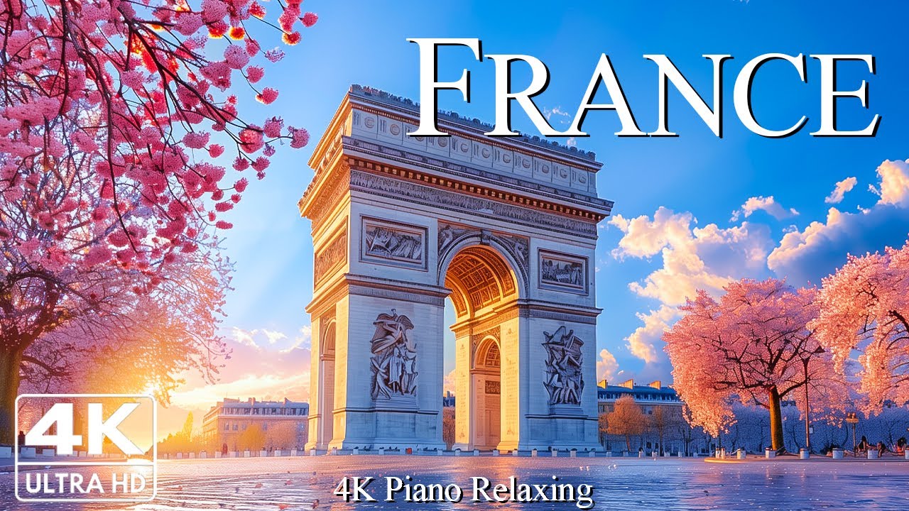 FLYING OVER France (4K UHD) Amazing Beautiful Nature Scenery & Relaxing Music, 4K Video HD