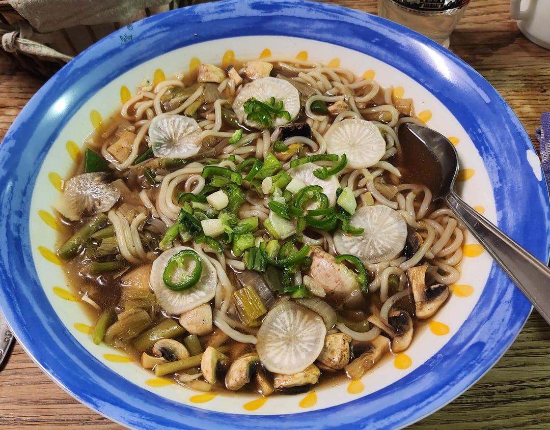 J’ai fait une recette incroyable avec des sobas que je trouve bien meilleur en goรปt que les udons d’ailleurs. Tu fais revenir des cรจpes et des gros champignons blanc ou marrons (des shiitakes si tu veux faire encore plus japonais) dans une poรชle avec de l’huile neutre jusqu’ร ce qu’ils soient grillรฉs puis tu ajoutes de la sauce soja, de l’huile de sรฉsame, un mรฉlange d’รฉpice de wok thaรฏlandais avec des graines de sรฉsame et de la vanille mรฉlangรฉ, un peu de sauce poisson, un petit peu de vinaigre de riz (ร faire attention, c’est assez fort comme goรปt) un peu de MSG et du sel. Tu remues tout รงa et tu laisses cuire un peu avec les champignons et tu mets รงa sur des nouilles soba รฉgouttรฉs. Trรจs simple et super bon. En plus de cela, tu peux ajouter des oignons nouveaux par dessus en assaisonnement final.