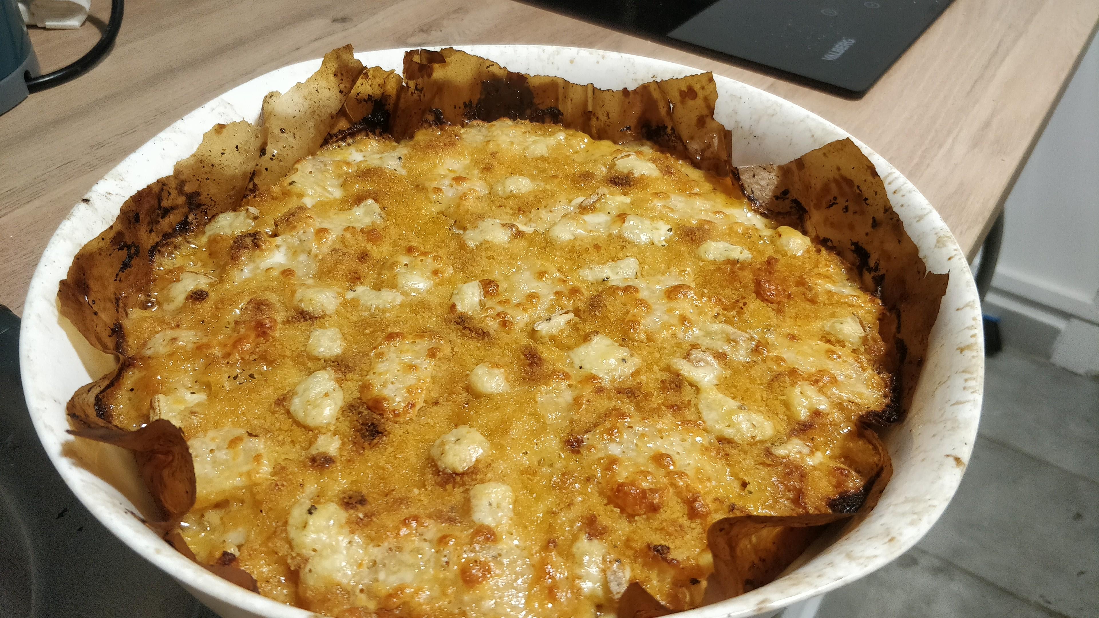 Les fromage: Gorgonzola pour des roux et combination de raclette et mozza au sommet.