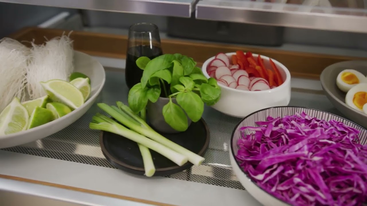 From storing platters to organizing ingredients the premium woodl finish is stylish and easily wipes clean make room for tall items with a convenient I slideaway shelf the fresh chill temperature control drawer spans the entire width of the fridge and can be customized for specific ingredients fish