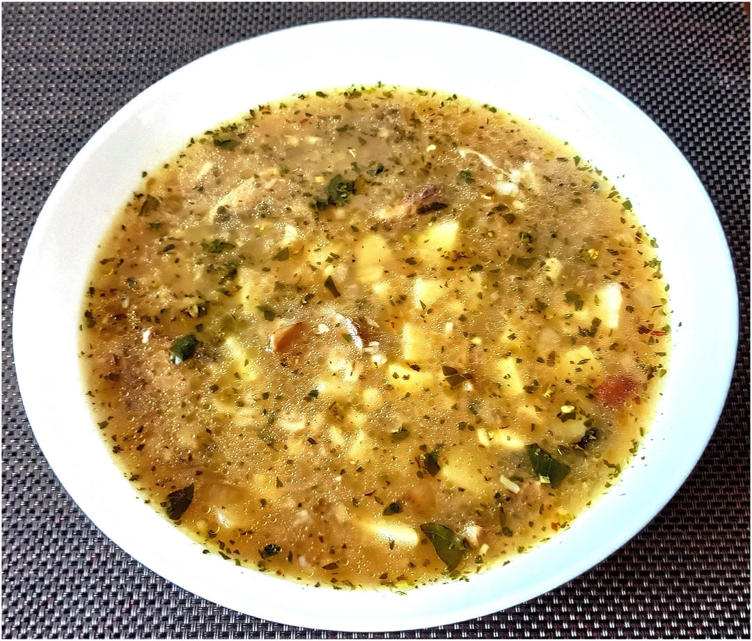 Today’s delicious lunch 😋 Mushroom soup with hail and a whole clove of garlic and baked white pork liver sausage “jitrnice” with potatoes and sauerkraut 🤤 It was delicious 👍 Have a nice evening 🍻