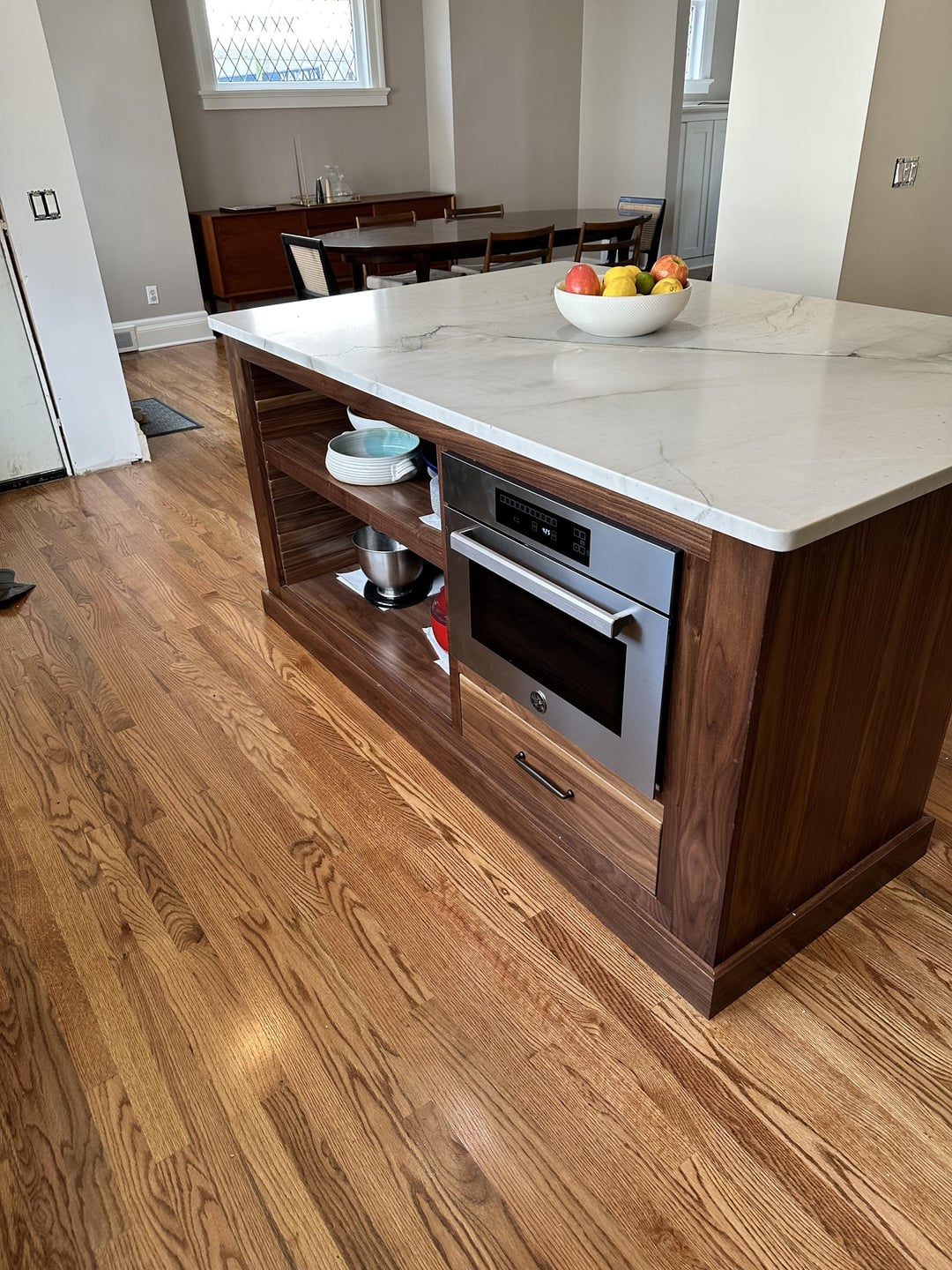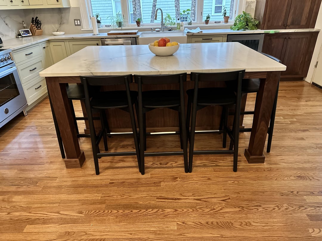 Your kitchen is beautiful, I especially like the wood of the island. Could you tell me the cabinet maker? Or the wood type and stain?