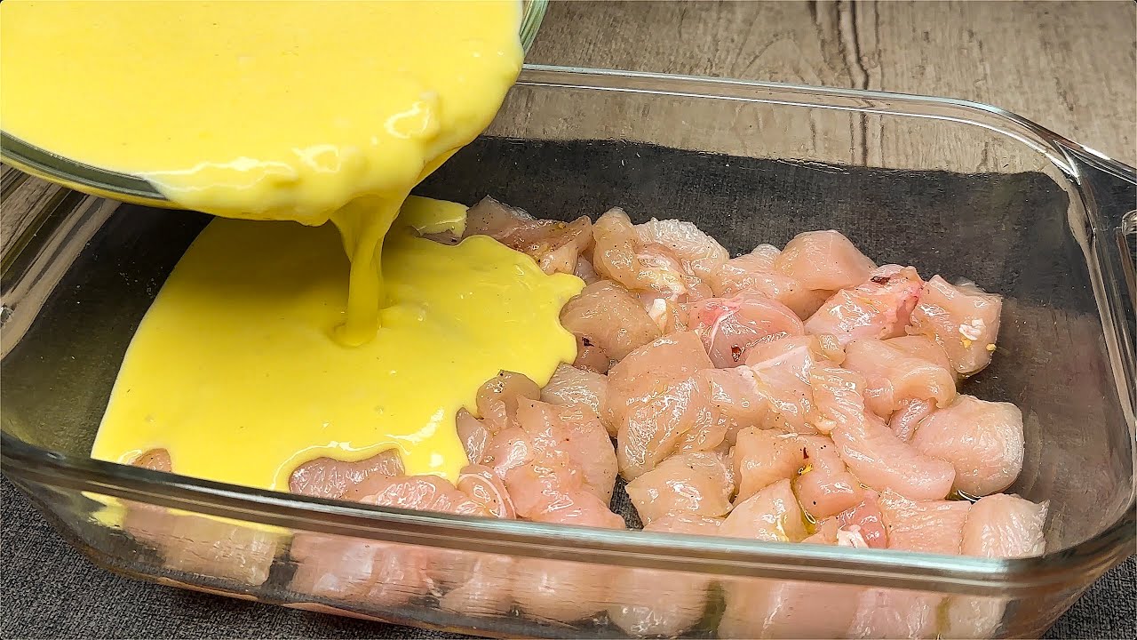 Delicious and tender chicken breast baked with eggs is an ideal solution for lunch or dinner. This delicious flan will please the whole family! Very easy, quick and truly filling recipe. Just a few simple ingredients are enough to make this tasty chicken casserole.