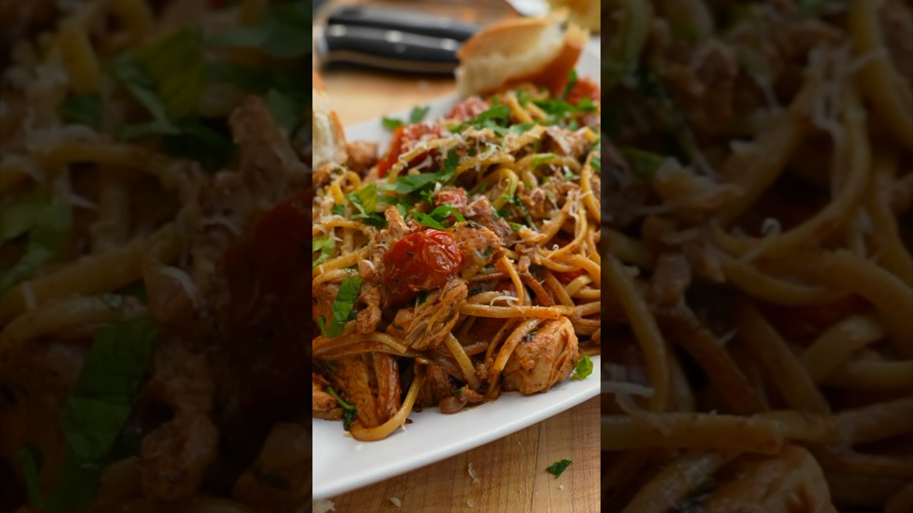 6. Once the chicken has rested, dice it up and return it to the Blackstone on medium-low heat. Add the blistered tomatoes, cooked linguine pasta, freshly grated Parmesan cheese, juice of one lemon, additional wine if needed, another tablespoon or two of butter, chopped Italian parsley, and a pinch or two of Kosher salt. Mix well.