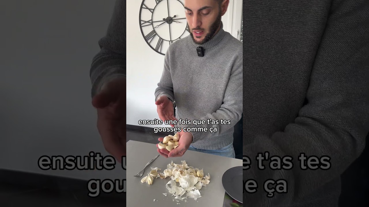 Et sinon pour enlever la peau de l'ail, il y a juste à écraser la gousse d'ail avec le plat d'un couteau de cuisine…
