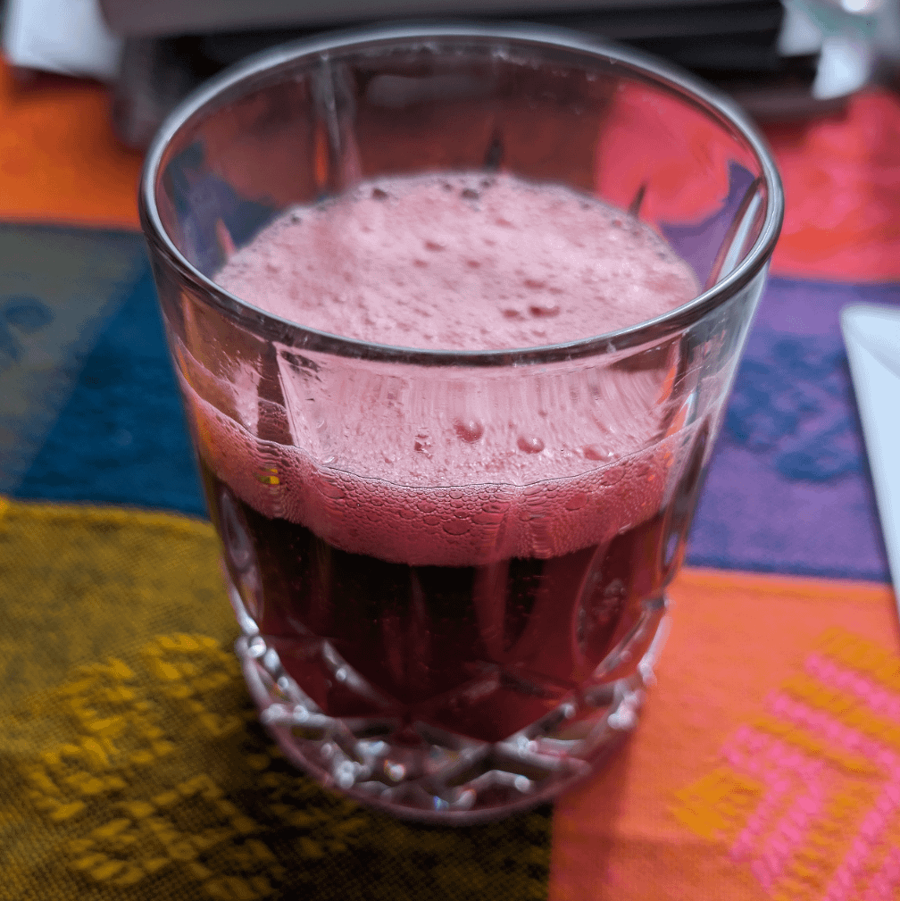 I made fizzy agua de Jamaica (hibiscus iced tea) with water kefir.