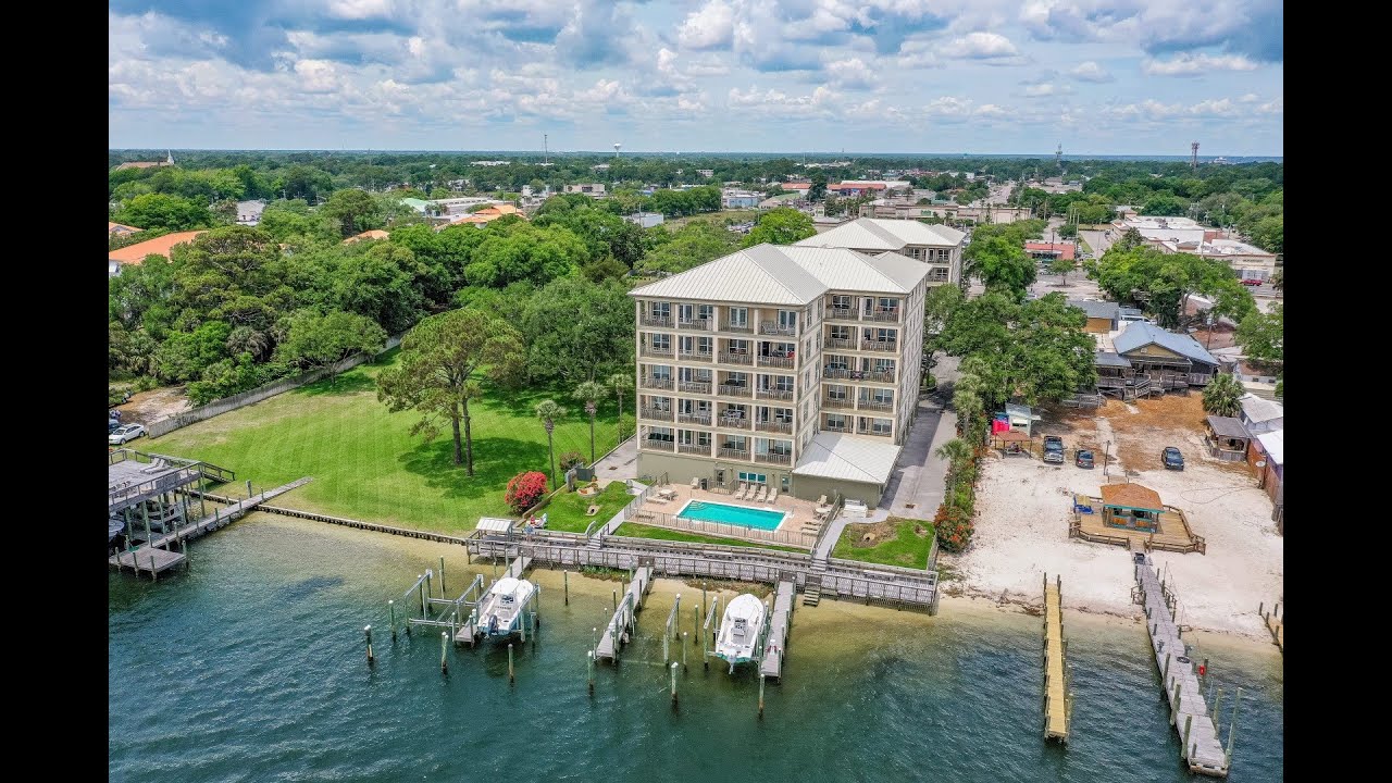 Experience luxury at Sailwatch Landings stunning penthouse! Situated in the esteemed gated community of Sailwatch Landing in the heart of Fort Walton Beachs dynamic downtown area, this penthouse offers unparalleled elegance and sweeping panoramic views of the Santa Rosa Sound and glimpses of the Gulf of Mexico. Spanning an expansive, mere 2,711 square feet on the sixth floor, this residence boasts five luxurious bedrooms, each with its own lavish en suite bathroom. The primary suite entices with a private balcony overlooking the serene waterfront, while expansive windows in the living area and several bedrooms frame the captivating vistas. Recently renovated to perfection, the gourmet kitchen is a culinary enthusiasts paradise, featuring beautiful all-natural quartz countertops, floor-to-ceiling wooden cabinets with elegant brass hardware, and top-of-the-line stainless steel appliances, including an induction cooktop.