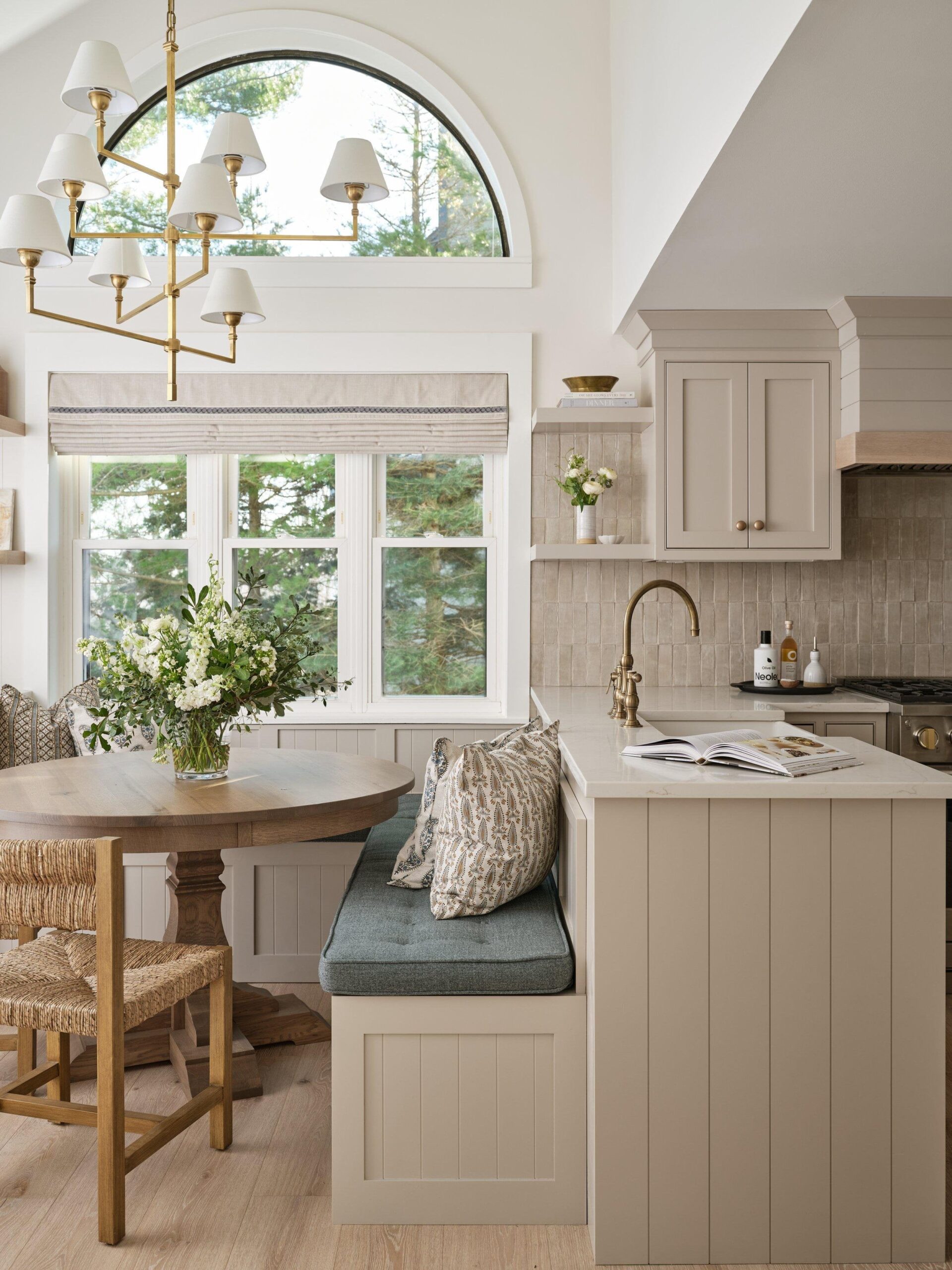 Breakfast nook in a renovated 80s ski condo with Okemo Mountain views, Ludlow, Vermont [2500×3333]