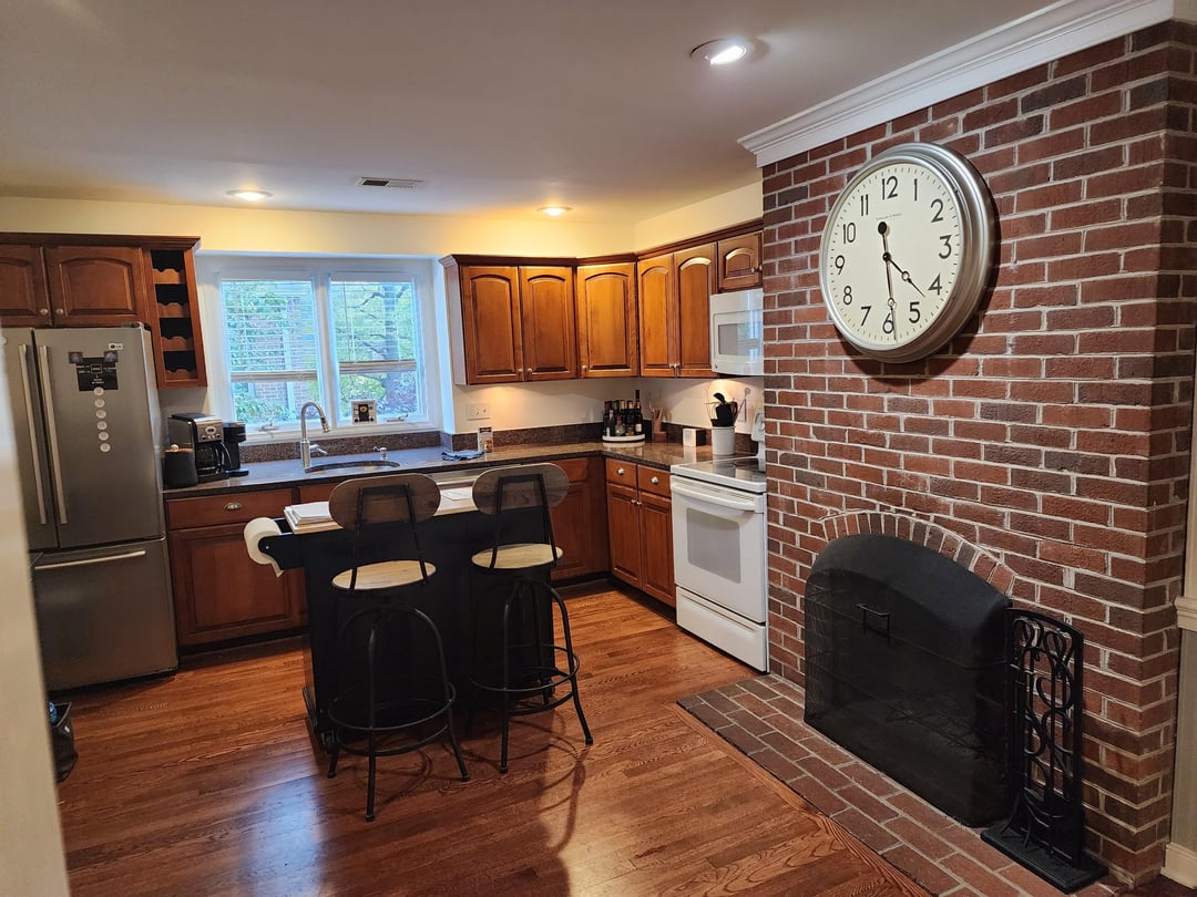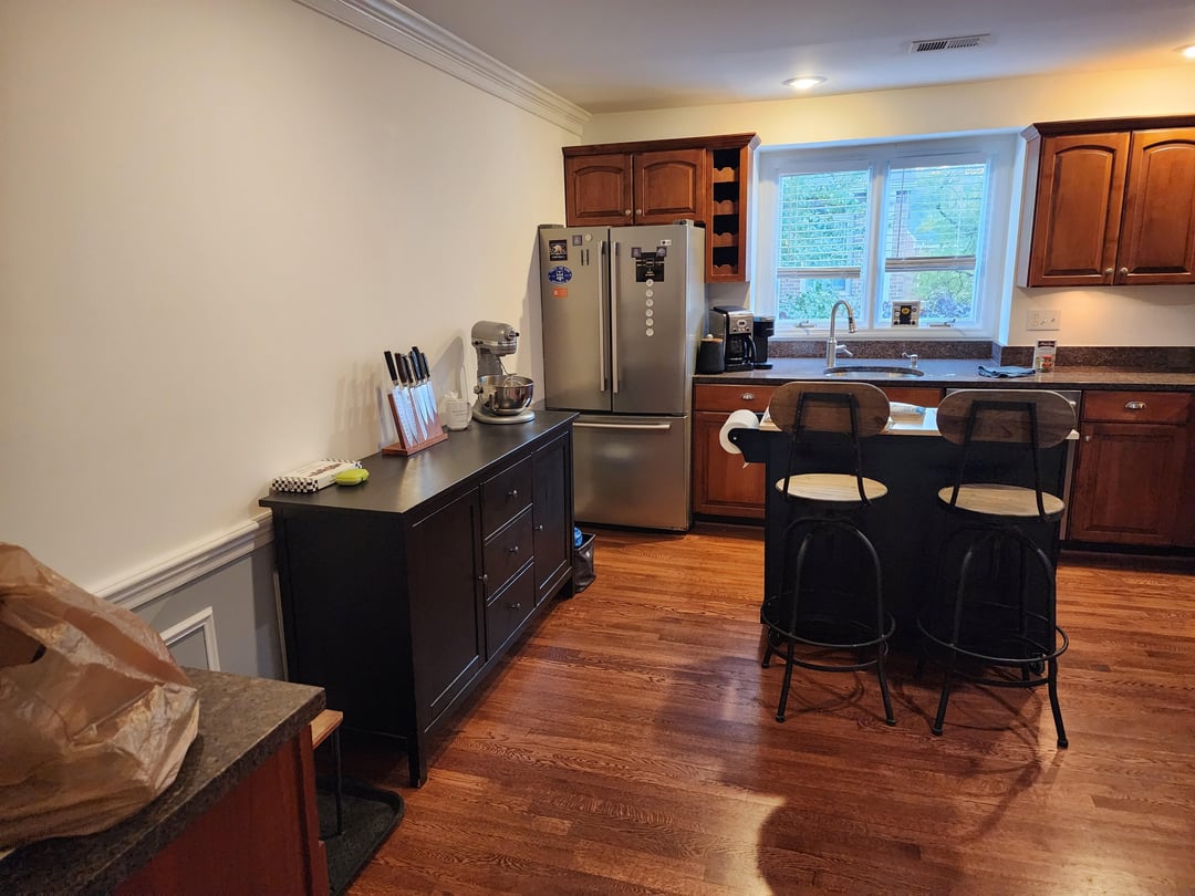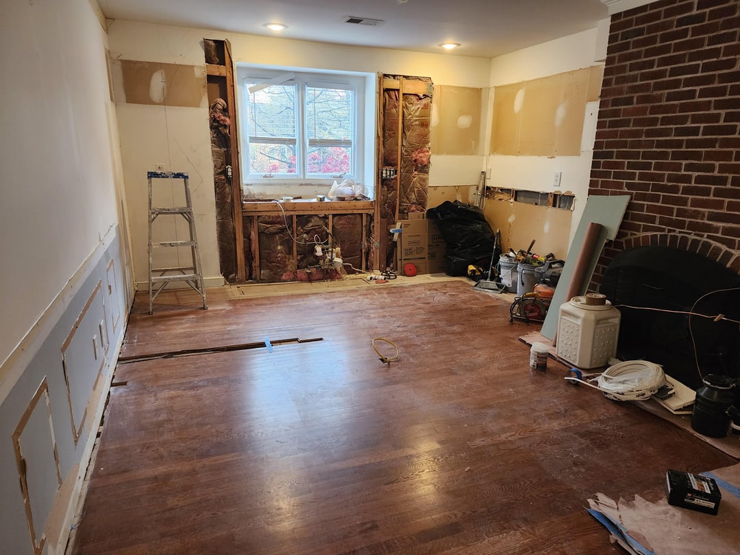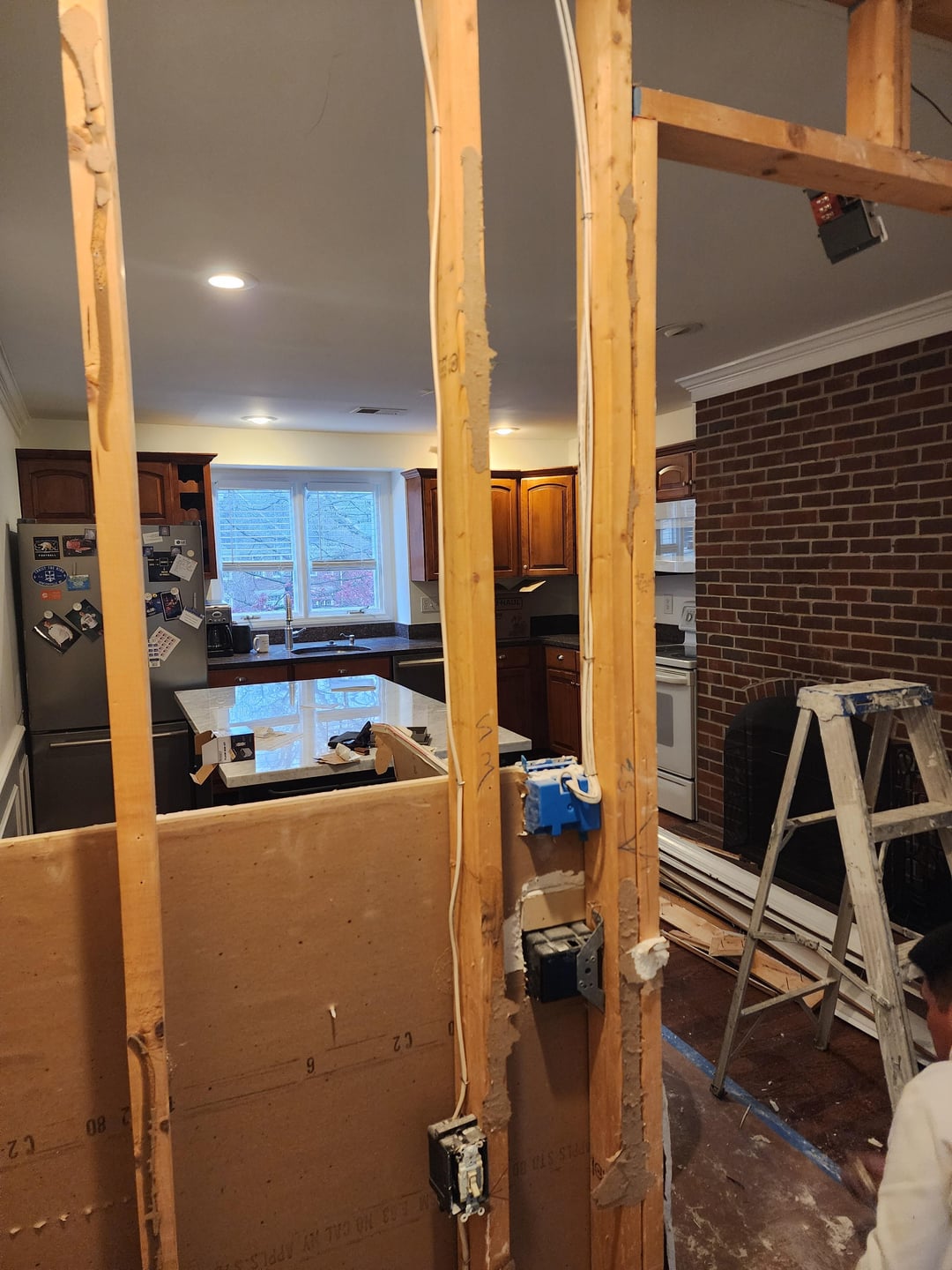 Bought the place I'm November and planned on updating the kitchen. Water leaking from the ice maker accelerated the process. Took out a wall at the top of the steps (2nd floor kitchen) and removed the cabinets/ counter next to the wall to make it flow better