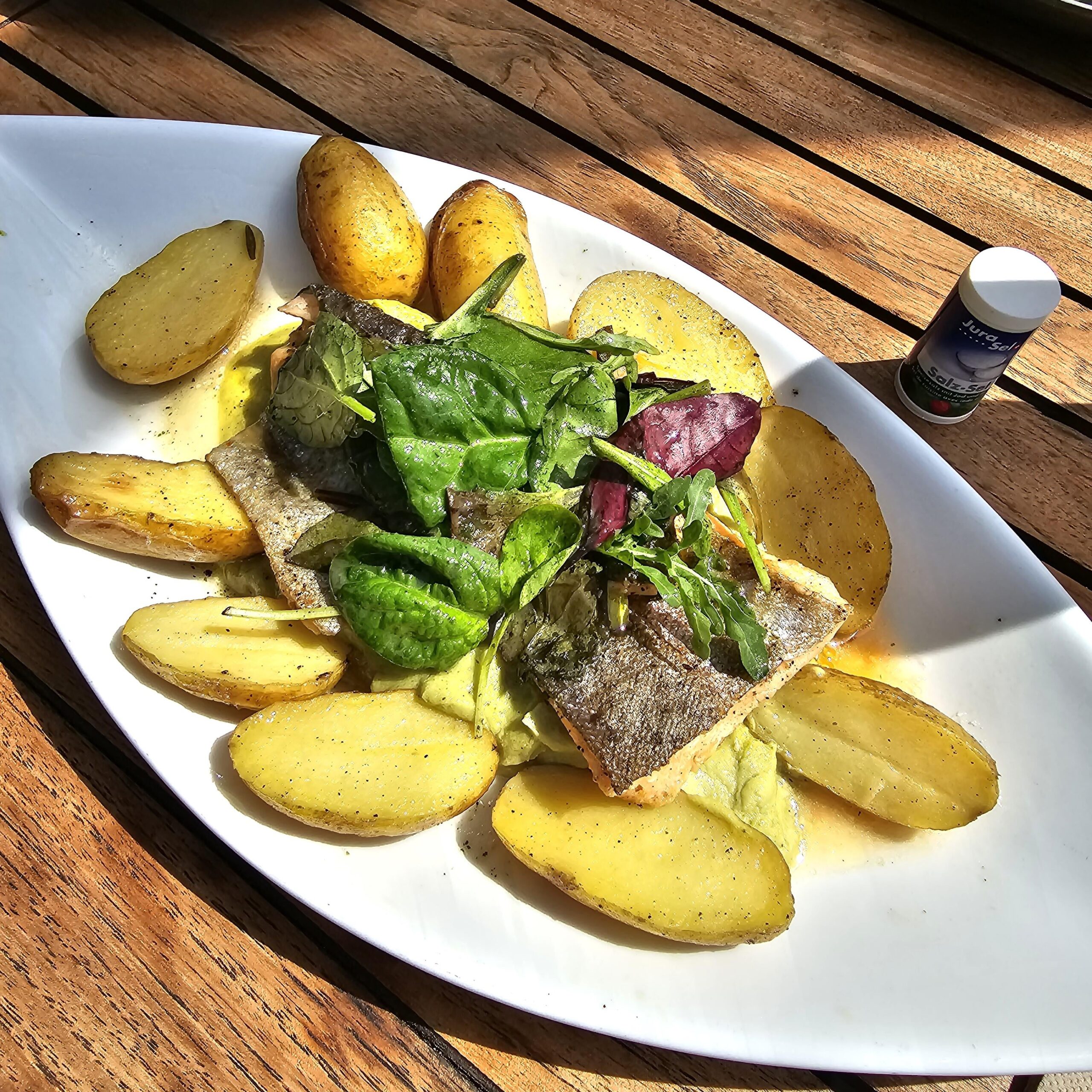 Fried salmon trout fillet on broccoli and lime cream with rosemary butter and swivel potatoes; served in Allensbach, Lake Constance, Germany by Gulliveig europeEurope EatsWrite A CommentYou must be logged in to post a comment.