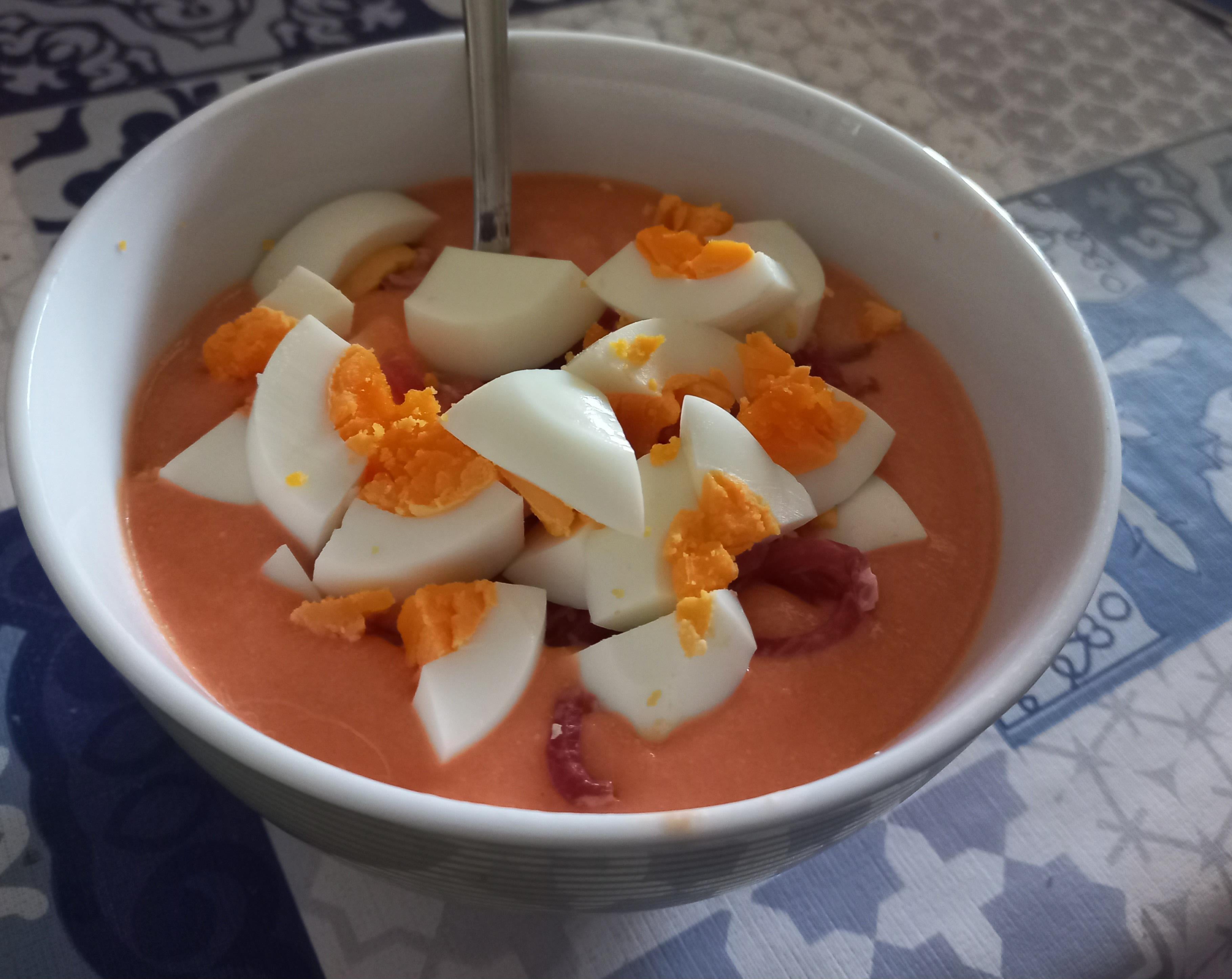 Salmorejo with jamón and hard boiled eggby Ailury europeEurope Eats 3 Comments Curious-Sherbet-9393 2 years ago andalusian cuisine* juliohernanz 2 years ago Ideal in summer days. A splash of extra virgin olive oil would do wonders ManualBookworm 2 years ago Delicious 😋Write A CommentYou must be logged in to post a comment.