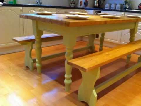 Fabulous Solid Pine Farmhouse Kitchen Table With a Pair of matching benches