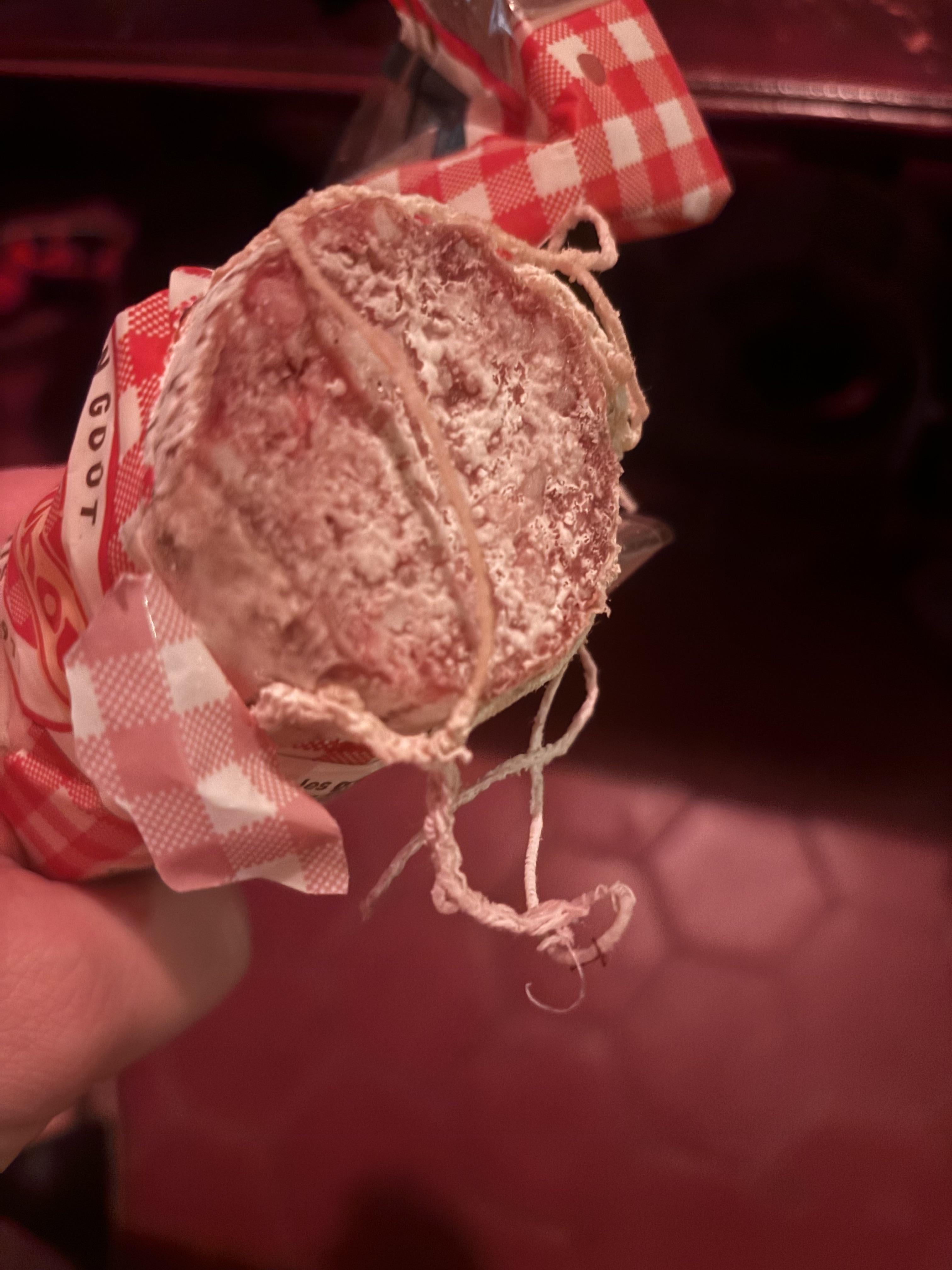 J'ai acheté ce saucisson il y a quelques jours. J'en ai mangé quelques tranches puis j'ai refermé le plastique et l'ai laissé comme ça dehors sans qu'il fasse ni trop chaud ni trop froid.