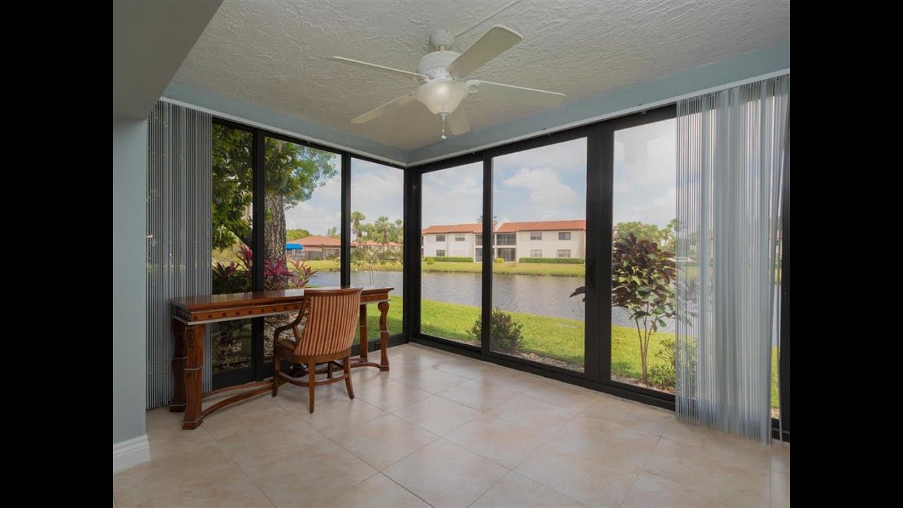 “Discover waterfront luxury in this desirable corner unit on the ground floor, boasting impact glass throughout for both safety and stunning views. Recently renovated, the gourmet kitchen is a culinary dream with a reconfigured island, white shaker cabinets, French doors, granite countertops, and stainless steel appliances. The open living areas seamlessly transition to a fully enclosed patio with impact glass, perfect for relaxing or entertaining. Neutral tile flooring adds elegance, while updated bathrooms and ample storage enhance convenience. Assigned parking at your doorstep and architectural ceiling details in the living room elevate the ambiance. Enjoy the serene waterfront vista with a fountain, beautifully lit at night. Located within walking distance to the clubhouse and pool, this opportunity won’t last! Plus, the seller has already taken care of the new roof assessment. Don’t miss out—schedule your viewing today!”
