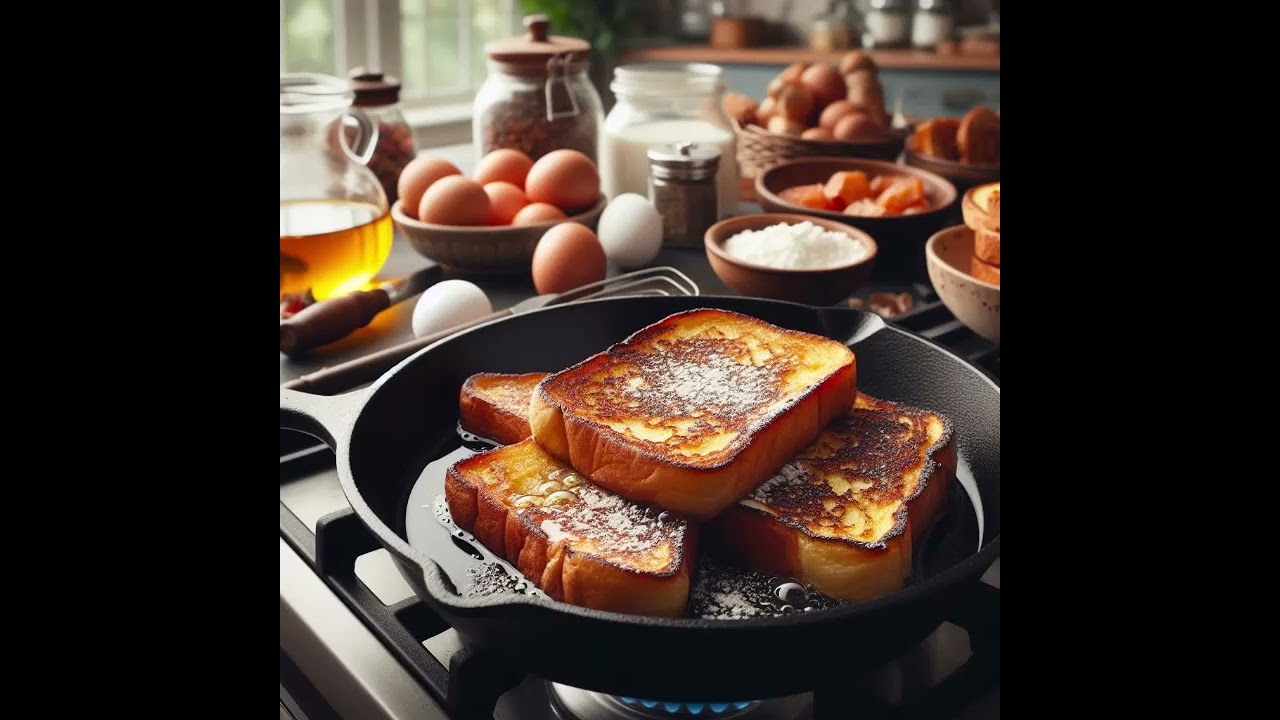 hello this is Larry hussy the host of The Frugal Gourmet and I would like to do quick and easy French toast today you take an egg and crack it into a bowl and then you pour one poure of whole milk into the bowl you gently stir the mix together uh you can put a pinch of sugar in there if you want to and then what you do is you pour the mix into a skillet that is warm to medium heat and pour the mixture on the skillet then put your bread on top of that and then pour the rest of your mixture if you have any more on top of the bread and then you use a spatula to turn the French toast thank you