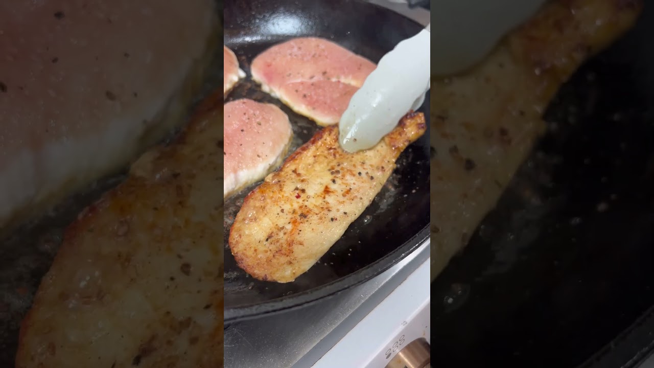 if you love french onion soup you are going to love this French onion chicken bake start by pounding your chicken breasts to an even thickness or slicing them in half if they’re really large then sprinkle with salt and pepper sear them on both sides until the outsides are crispy use some butter to scrape down the pan and add thinly sliced onion the thinner they’re sliced the faster they caramelize add some white wine to help them cook faster and continue cooking for about 10 minutes add some garlic and Thyme and continue until they’re a deep amber color pour in some chicken stock with corn starch to thicken it add the chicken back to the pan and top them with Grier cheese bake them for 6 to 8 minutes the tender chicken melted cheese and fresh timey makes this so so good you’re going to love it