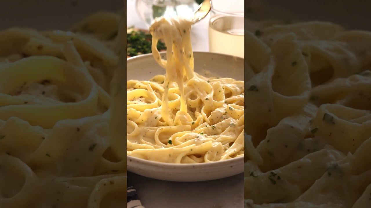 this incredible fetuccini Al fro is so creamy comforting and delicious it’s a symphony of Parmesan cheese butter garlic and cream so easy but it’s delicious every single time add your garlic into the sizzling butter once it’s fragrant we’re going to stir the cream in and get it nice and bubbly before adding our parmesan cheese stir once more and allow it to Bubble Up and thicken then we’ll season with more salt and pepper add your pasta in and do not forget to reserve that pasta water it is the secret to having a delicious fetuccini because the pasta absorbs all that sauce right away enjoy