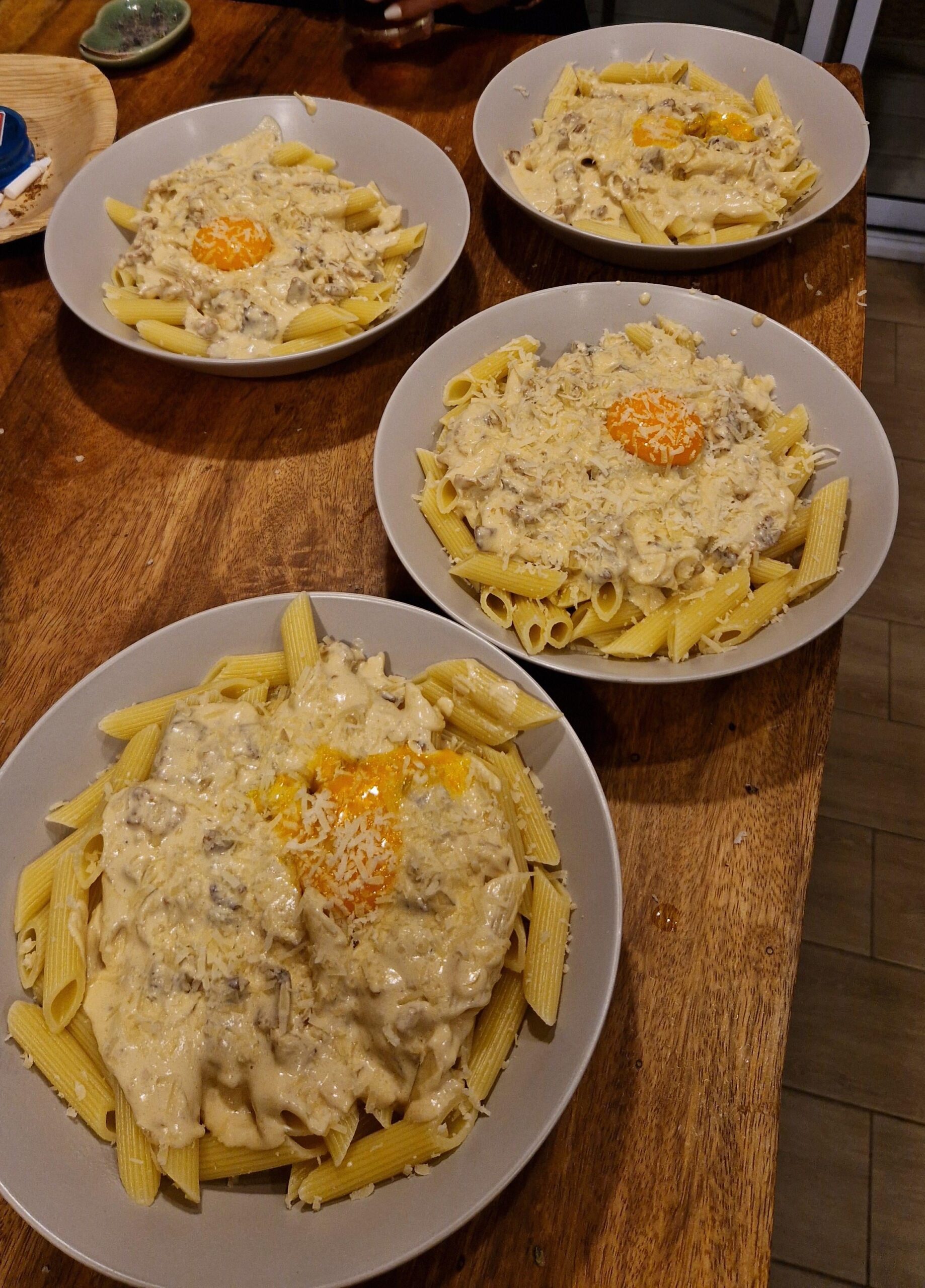 Homemade pâtes carbonara à Koh Phangan (Thailande) – A l’emmental et crème Française of course