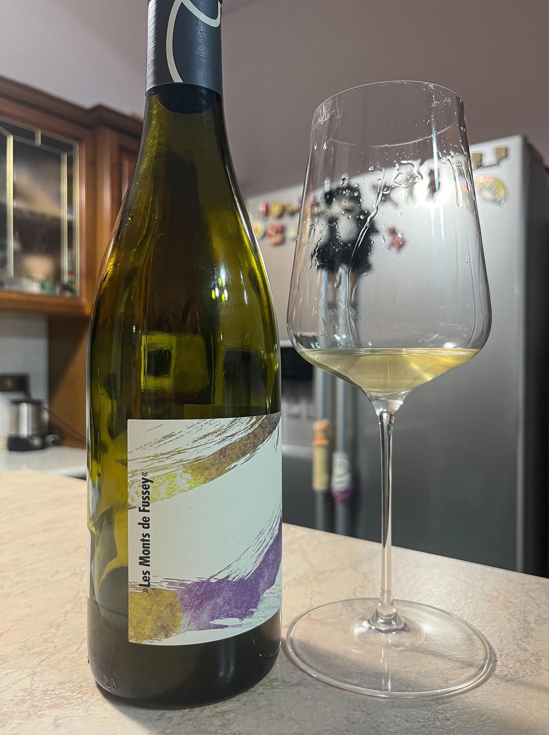 Taut in the mouth, marked acidity, not much structure and body, sleek and fine, savory finish. It makes you want to like it/drink it 🤓