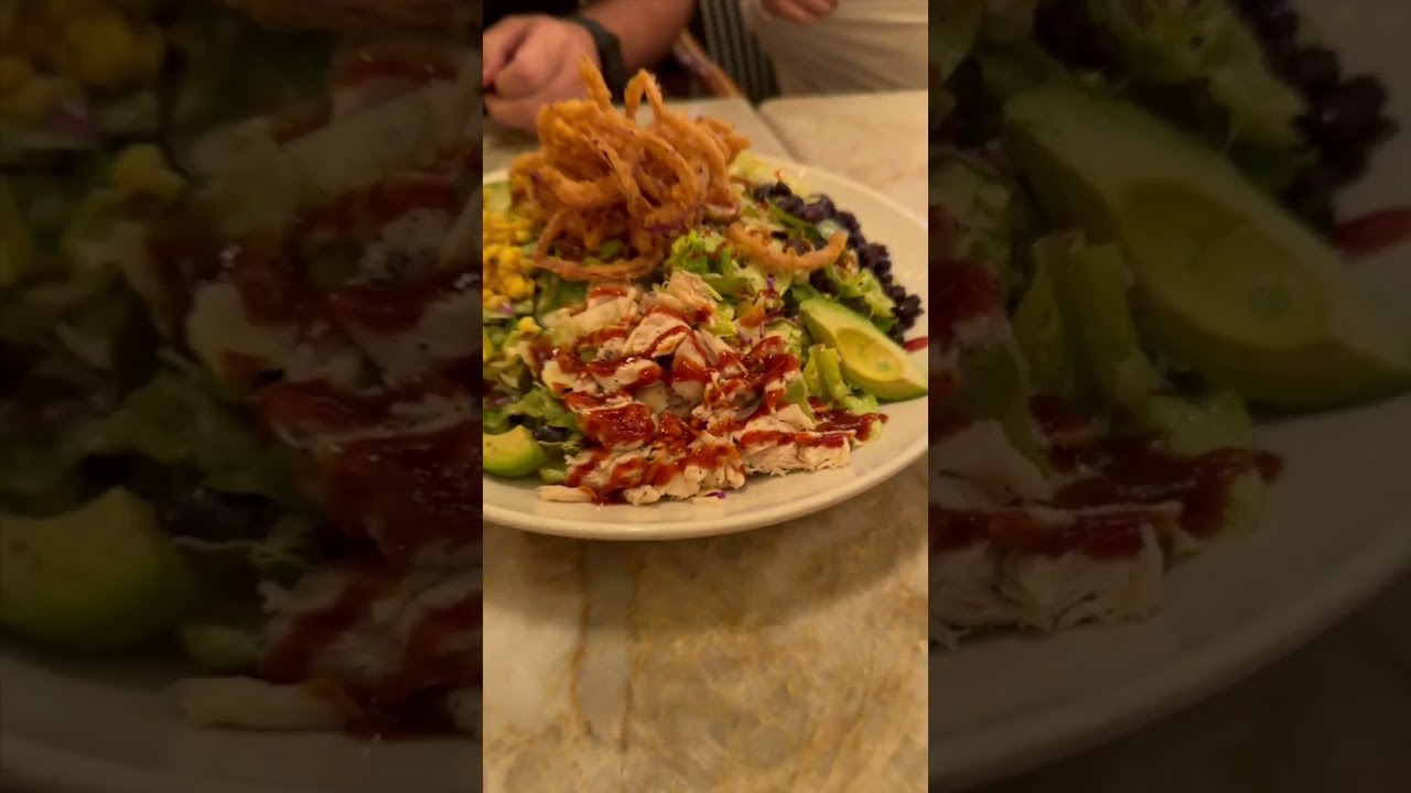 Cheesecake Factory let’s see how cheap we can feed our family of six we’re just going to split the barbecue ranch chicken salad the gluten-free french fries to six plates and lots of extra Ranch yeah chocolate red so I’ll have that right out let me grab some extra plates for you too [Music] all right so we all got salad and then our fries are still coming thank you very much yeah look at those fries AER so the ranch chicken salad was $8.95 the side of fries is $6.95 so our total was 28