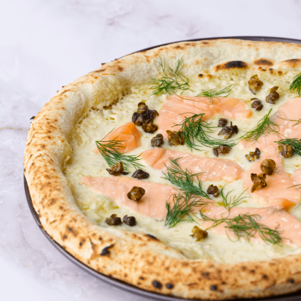 Pizza Napoletana Salmone – Horseraddish/mascarpone base, fior di latte, fried capers, salmon, dill. by aPinchOfThyme europeEurope EatsWrite A CommentYou must be logged in to post a comment.