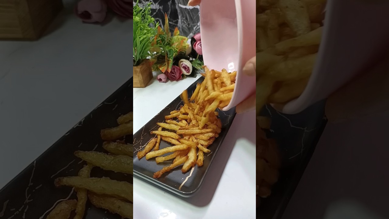 फ्रेंच फ्राइज फ्रेंच फ्राइज ना कितना भी खा लो पेट भर जाता है लेकिन मन नहीं भरता है तो चलो बनाते हैं रेस्टोरेंट जैसा कुरकुरा क्रिस्पी और मजेदार फ्रेंच फ्राइज तो आप जितना मर्जी उतना बनाओ और जितना मर्जी उतना खाओ आपको कोई रोकने वाला नहीं है तो अब जैसे ही पानी गर्म हो जाता है ना घड़ी में 5 मिनट का टाइम सेट कर लो और उतना ही देर आलू को बॉईल करो इससे ना आपका फ्रेंच फ्राइज बहुत अच्छा बनेगा तो अब करना क्या है आलू में जितना भी मॉइश्चर है ना उसे अच्छे से सुखा लेना है या तो आप किचन टॉवेल का यूज करें या तो आप किसी सूखे कपड़े में रखकर सुखाए बस इसमें थोड़ा सा कॉर्न फ्लर डालना है अच्छे से मिक्स करना है और गरमागरम तेल में फ्राई कर देना है और अगर आपको भी मेरी तरह ज्यादा क्रिस्पी और कुरकुरा पसंद है ना तो आप इसे डबल फ्राई कर ले बिल्कुल खोलते हुए तेल में और बस इसमें थोड़ा सा ऊपर से चाट मसाला स्प्रिंकल करें तो बनाओ खाओ एंजॉय करो टाटा बाय बाय
