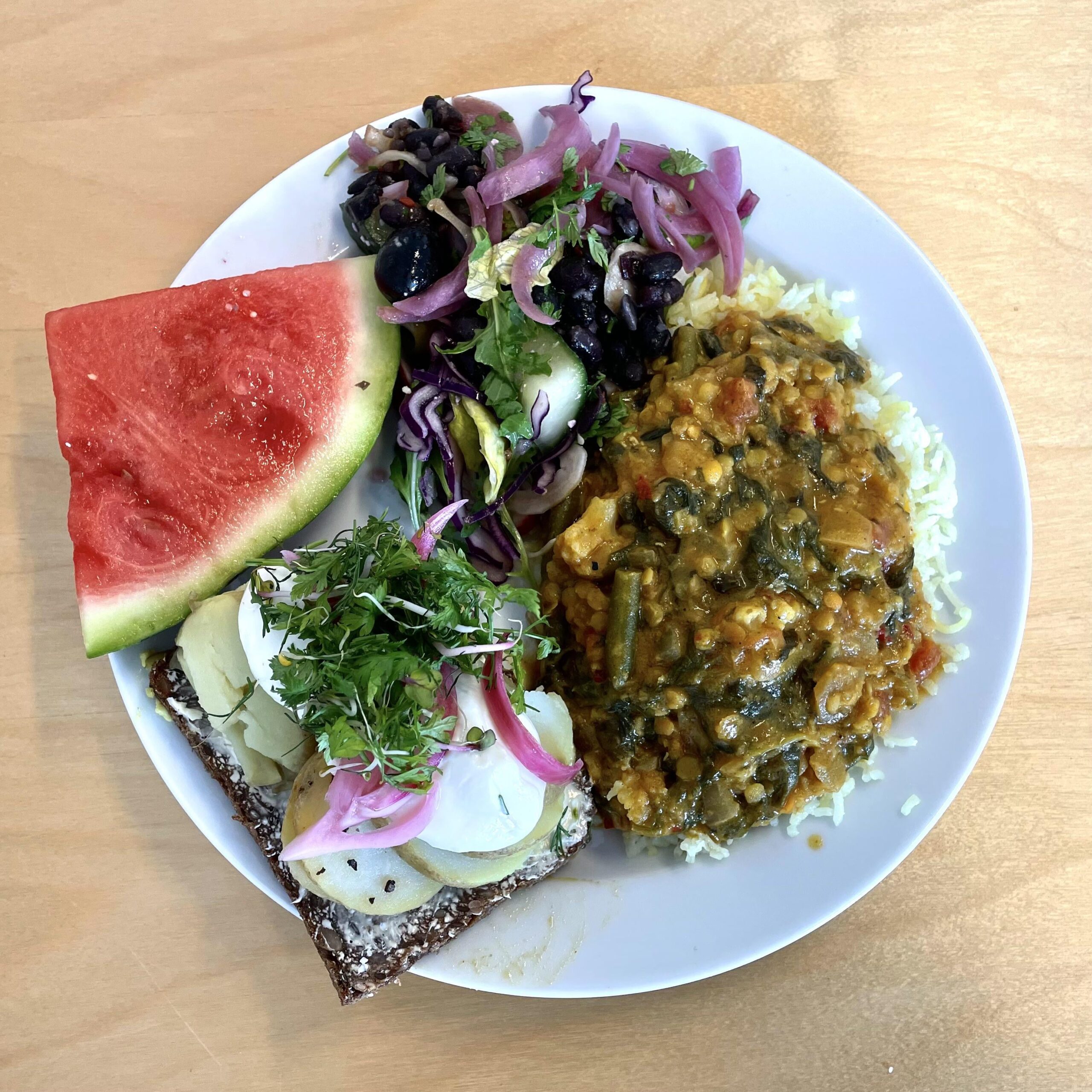Three of the four canteens at the University of Copenhagen southern campus only serve vegetarian & vegan food (at least 90% organic). As someone who is trying to cut down on my meat consumption, I feel pretty fortunate to be able to eat stuff like this for lunch every day.
