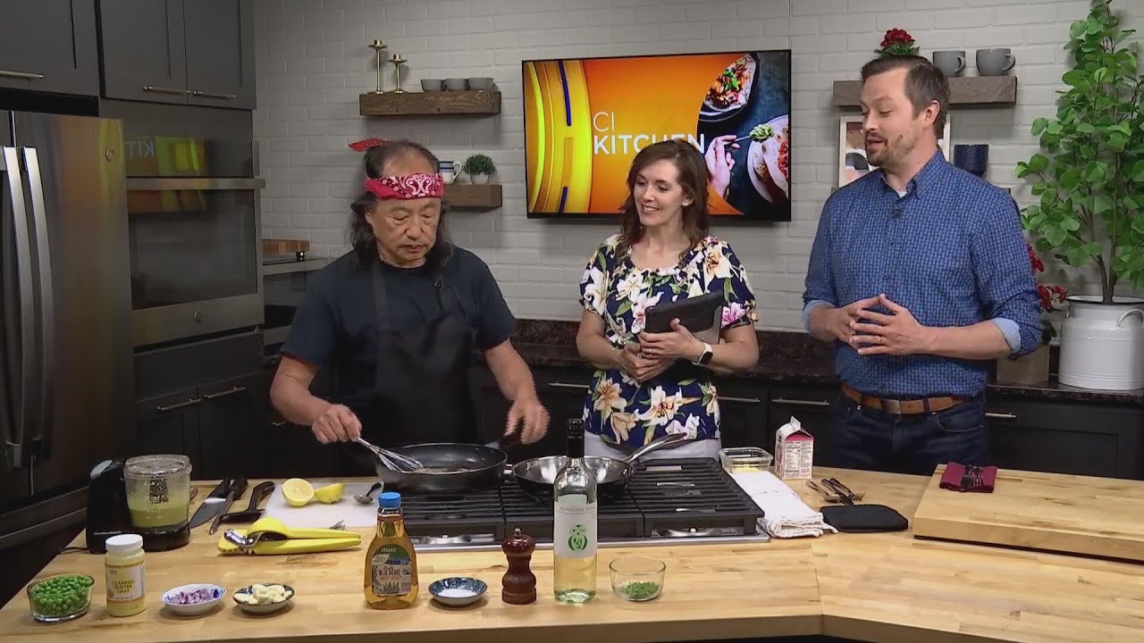 we are back now in the CI kitchen with guest Chef Paul Young and it smells delicious in here it absolutely does let’s remind Ryan what’s on the menu today ah we’re having fresh Cod from Harvest Market and so far we’ve cooked the fish in butter or ghee okay and we’re now finishing the sauce so right now we have onion garlic reduced white wine okay we’re ready to now transfer the wine to another pan and the reason I’m going to do that is because I want to go through a process of straining there’s um nothing wrong with leaving the garlic onion in there but okay what the french like to do is like to clean up the sauce so what we want to do is go in here and squeeze out some of the juices so it’s more about getting the flavor from all of that is yes it is pan juices and then to that we’re going to add cream so this isn’t a chunky sauuce no more oh no so this will look much better when it’s plated oh yeah look at that and we are also we going to add a little bit more cream we also going to put a little squeeze of lemon in there so it’ll be a slightly sweet and sour and my favorite thing kitchen tool is a little lemon squeeze yes I have one of those those things are magic they are and to counter the sour we’re going to go with just a little bit of sugar now sugar in my kitchen is a g nectar so instead of mixing up sugar and water we’ll compensate for that and now the sauce is done all we need to do is put a little bit of salt and pepper into the sauce like so and we are ready to plate and eat oo okay that came together so fast it is now the warm uh the oven is warm because we didn’t want the fish to get cold so here we have the cooked fish and if I may I’m going to squeeze right through yes grab the sauce and we’ll do just like the French do we’ll pour the sauce right on top of the fish that is beautiful now the plate is kind of naked right now so the French like to do is do a little bit of garnish and one of the things we can do is you can take pea puree there’s nothing much more in here than cooked peas salt and pepper and a little bit of lemon so basically go garnish like so nice get a little bit of color in there do you teach people how to do this at your cooking classes absolutely I do the art of plating well it’s whatever the cuisine demands in the French really enjoy decorating their plate so we even put a little look at that there you go all that color you make I I have a question cuz this is a French dish what makes French food so different than other Cuisines around the world depends on History okay at one time French cooking was really elaborate okay since the 1960s and70s the new trend is Noel Cuisine new Cuisine based in Leon and Def philosophy it’s a philosophy Simplicity okay butter salt pepper okay sauce for the flavor a little bit of reduced white wine just a little bit of sweet and sour and the garnish the plating make it beautiful so they get an aesthetic visual experience and it smells a great taste experience wow it’s the whole package everything together well I think I need to try this try in the meantime if you want to connect with Paul Paul come back over here we’re missing you um he’s got some upcoming classes where they’re going to be featuring food of Japan food from Greece we’ll have all of that at ciliving.tv and um if you want to learn more about cooking with Paul we’ll connect you ciliving.tv