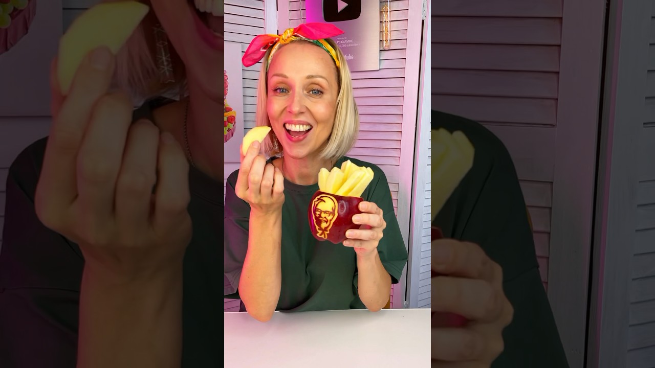 In this video I show you how to make healthy French fries. Use apple carving to create potato wedges. It won’t harm your figure and looks fun. This is how you can make fun of friends or children. Simple tips for fruit slicing and carving