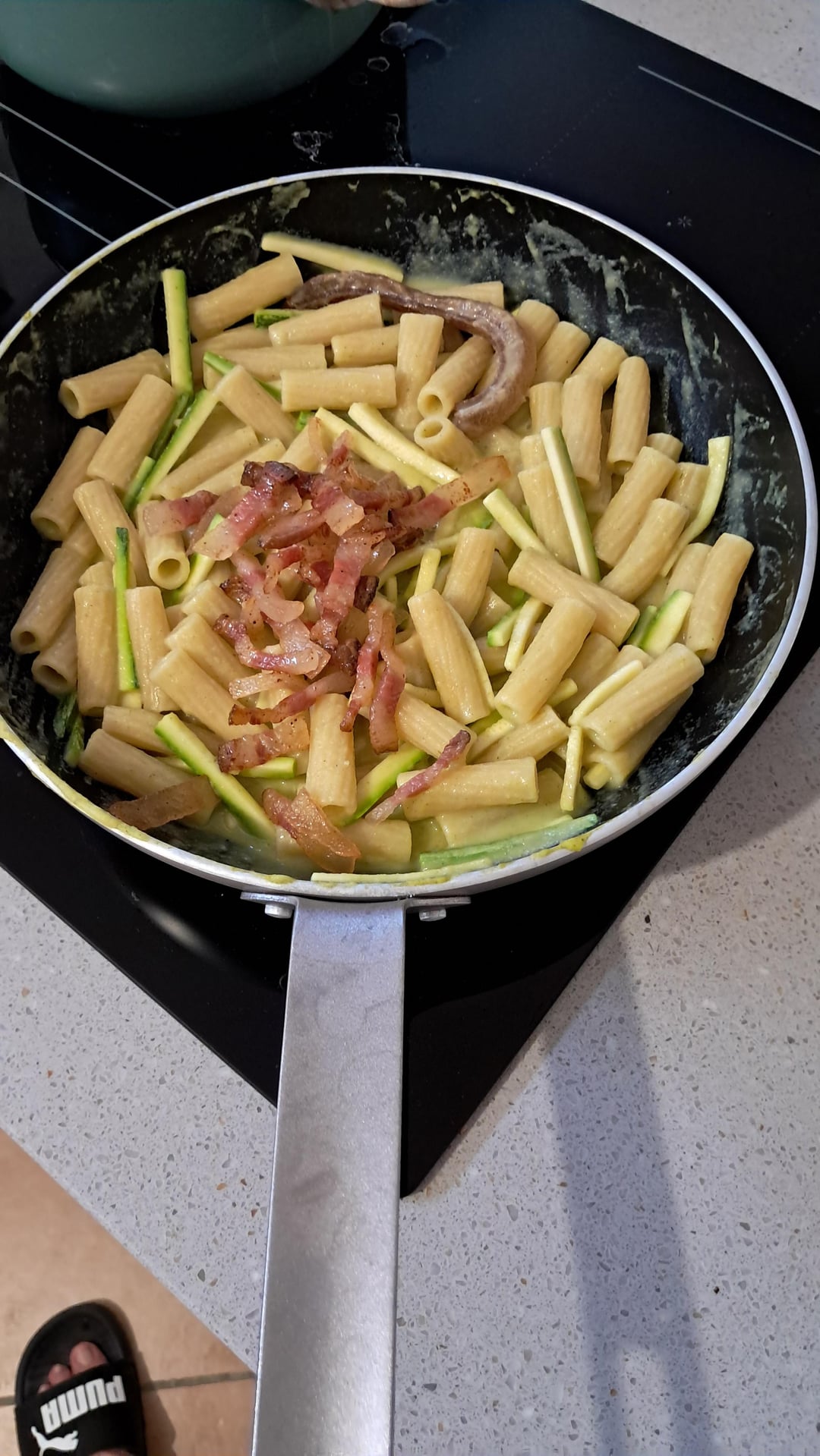 Guanciale, Zucchine, Aglio, Sale e Pepe e Maccheroni