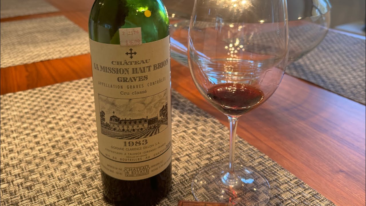 hello everyone trophy one Hunter thought I’d just do a casual video on my coach on the 1983 Chateau the mission alri da de pontac and he actually purchased it in 1533 I guess he must have given it to his sister um and then his sister got married to a person called Arno de lonac and then uh when he died the estate changed in 1607 to uh Miss Olive the lonac and she eventually bequeathed the um Vineyard to the congregation of the mission which is a uh Catholic order and that’s how you got the name the mission Aron the mission Aron for a time period belonged to the Roman Catholic Church um only some of it was used for Vineyards about 10 hectars was used for planting a Vineyards and the grapes were sold commercially they weren’t used in the church at all it was still owned by the Roman Catholic Church up until the French Revolution when at that time um it was sold at public auction and then In 1855 there was a person um who bought an American called uh the Chappelle family and then it changed hands a couple more times and then in um 1919 another uh person Frederick walner uh P purchased it and the rotner family um remained the owners of the mission a on until 1983 and then the uh estate was uh purchased by domain Clarence Dylan who also owns chatau auon among other um properties and then once really uh the Clarence Dylan group got involved that was really the new start of the um Winery and the whole estate got replanted and this wine actually marks the start of this was the first vintage under uh the Clarence Dylan the domain Clarence Dylan group and also the new um wi maker which at that time was uh Jean Pierre uh Del Mouse so you can understand by the history of this why CH Bron was a much more famous wine because of the ownership changes because it was owned by Roman Catholic church because it wasn’t uh really mass-produced as much as aurion and its story um it wasn’t ranked um in the 1855 classification system although I think generally speaking it was equivalent to probably a second growth at that time anyways so the mission Aron has 27 hectars planted for red mine gapes and about almost close the four four hectars planted for white wine grapes uh the vineyard for the red wine grapes are planted 45% uh Cabernet song about 43% Mero and about 10% Cabernet frog but you’ve seen steadily an increase in the amount of Mero that’s been uh in the vineyard and a decrease in the amount of C Cabernet 7 and Cabernet Fran this is the technical part I don’t know if it and again I’ve said that in many videos I do the technical part cuz people like this type of stuff but actually it’s more a justification of why the wine is good it actually doesn’t make a lot of difference because we as consumers doesn’t matter how many oak barrels or how you talk about the terar the wine makers have so many techniques but people like to know more so I kind of talk about this part um so the vineyard is deep gravel over clay and sand and choc on the top soil uh and underneath you find more gravel um and then along with some clay and some sand uh the vineyard is placed on two Ridges of gravel that reach up to 25 M in elevation um The Vineyard is situated between two streams the ARs and the Peno and they provide moisture in the uh dry vintages the average age of the vines is 27 years and it’s planted uh to a density of about 10,000 Vines per hectar which is more than um chetto opon so that probably explains the difference between the two um wines uh one is of course the soil is a little bit different two is the planting of the grape varial is a little bit different and then three um this is planted a little bit heavier in terms of the density than chatau auon so you would kind of uh promise from that that probably chatau Ron is if you had to empirically judge a more refined or a better wine so although um The Chateau is actually across the retreat from Chateau aurion it’s funny because the actual Vineyard sites uh with auon they are in P Lan in uh for L Miss Aron only about I think two of the actual plots are in Pon the rest of them are in a p place called talents so the are actually uh vinified in a large um stainless steel bats and then they are aged 100% in new French Oak for an average of 22 months the annual production of the mission Aron is between 6 to 7,000 cases and um something that’s I think unique is the blending of L Mission opon takes place shortly after Baltic fermentation and um is finished before they are aged and bu arrows and I guess the property feels that it is better to blend the wines before the influence of wood has been felt on the wines so generally speaking L Mission Aron produces a um intense Rich opulent wine with a lot of charm it’s more full bodied and concentrated than oong um and so it often has um smoke tobacco Earth truffle spice and Cassis scents so uh you would kind of um describe it in terms it’s kind of a rougher version of auon orbon to me is a little bit more graval and minerally and earthy but um still refined in terms of its tannins uh L Mission generally speaking is a little bit more tanic a little bit rougher around the edges uh that changed if you drink um we’re going to drink this wine but if you drink pre 1983 it was even rougher and a more aair than it is now and I think it’s more developed uh through the current ownership and the why maker a much more um charming and opulent style um so again um it’s now currently managed by Jean Philip Delmas and he is the third generation of delass family to manage aurion and the second um generation to take care of Chateau sorry the mission opon uh so he followed in the footsteps of his father John Bernard Delmas who um was the original uh wine maker in 1983 that took over uh the uh management of the Vines for uh the mission opon let’s look at the Cork and the bottle so uh this is the cork it’s fully uh oxidized there’s not a lot of spring in the left but it’s 1983 so what do you expect cork
