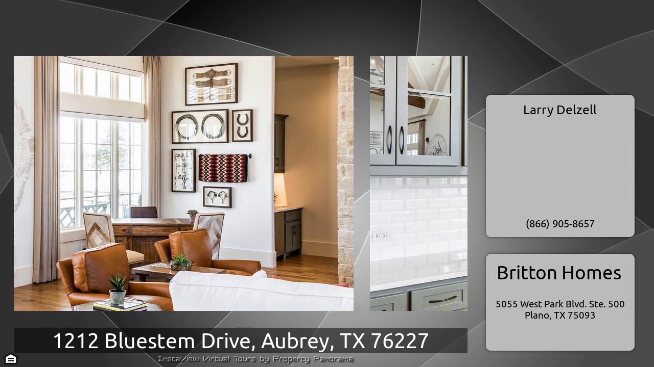 The Virtual Tour for the property at 1212 Bluestem Drive, Aubrey, TX 76227 listed for $484,900: Other homes for sale by Larry Delzell of Britton Homes: PERRY HOMES NEW CONSTRUCTION! Library with French doors and ceramic tile floor set at the entry. Media room with French doors. Formal dining room with ceramic tile floor. Kitchen features a large island with built-in seating space. Family room with ceramic tile floor has a wall of windows and wood mantel fireplace. Private master bedroom features 13-foot ceilings and three large windows. Double doors lead to master bath with dual vanities, …