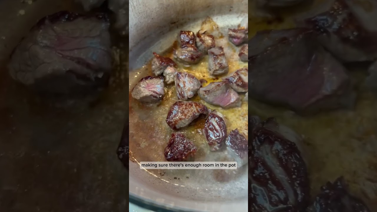 there’s a reason why beef bourgeon is the most famous beef stew dish in the world it was a favorite of Anthony Bourdain Julia Child and of course myself which is why I made it in the dead of June for my birthday because it’s so good it should be served Even In The Heat Of Summer here’s how you make it Cube and salt chuck roast beef and then we’re gonna sear it on all sides making sure there’s enough room in the pot so you don’t overcrowd the pan and steam it remove the beef from the pot and then we’re going to go in bacon saute that out rendering the fat and then we’re going to go in with leeks onion carrots and celery saute until translucent and then add garlic tomato paste and saute for another about three minutes then we’re going to deglaze with a whole bottle of Burgundy wine yes a whole bottle it’s called beef bourguignon for a reason people add some bay leaves beef back and then we’re gonna put it in a 325 degree oven for two hours in the meantime saute corded or whole mushroom cups and then pearl onions we cook those separately so it’ll get too mushy in the stew remove the beef stew ones that it’s nice and tender test it with a fork