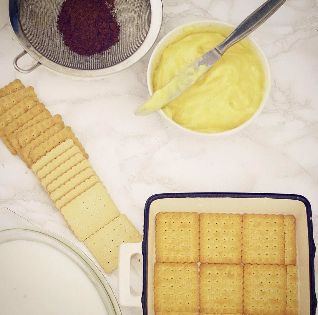 Only few ingredients: cookies, “pasticcera cream”, coffee or milk! MY RECIPE HERE 👇 https://www.tavolartegusto.it/ricetta/dolce-mattone/