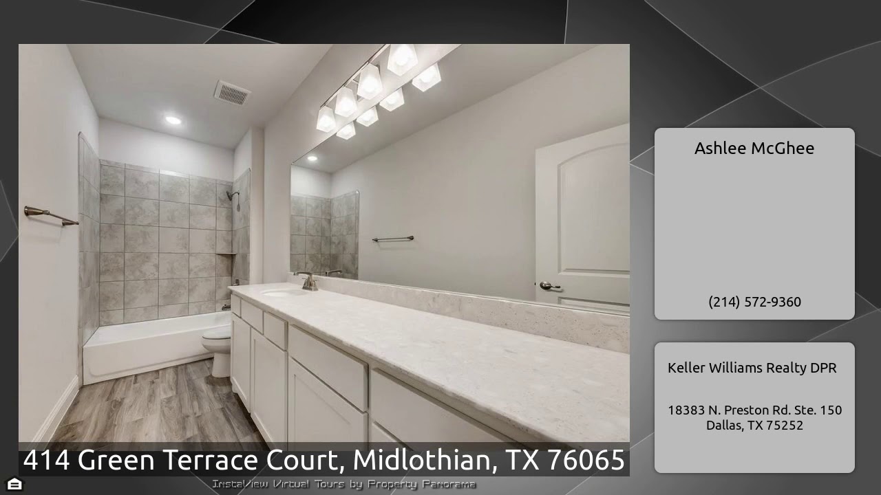 The Virtual Tour for the property at 414 Green Terrace Court, Midlothian, TX 76065 listed for $331,198: Other homes for sale by Ashlee McGhee of Keller Williams Realty DPR: Ready November 2019! Lillian Custom Homes, The Caddo Plan features a one story Stone elevation with rounded foyer, 3 bedrooms, 2.5 bathrooms, Open concept, casual dining, Study with french doors. Expanded master suite with rear bow window sitting area and 2 LARGE walk in closets, Radiant Barrier, Stainless Steel Appliances, Fireplace.Covered Porch & Patio, full sprinkler & sod, & 2 Car Garage. Wood Tile! Each Lillian …