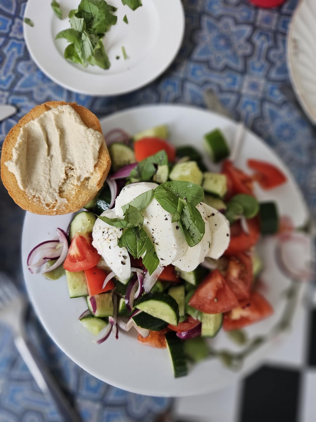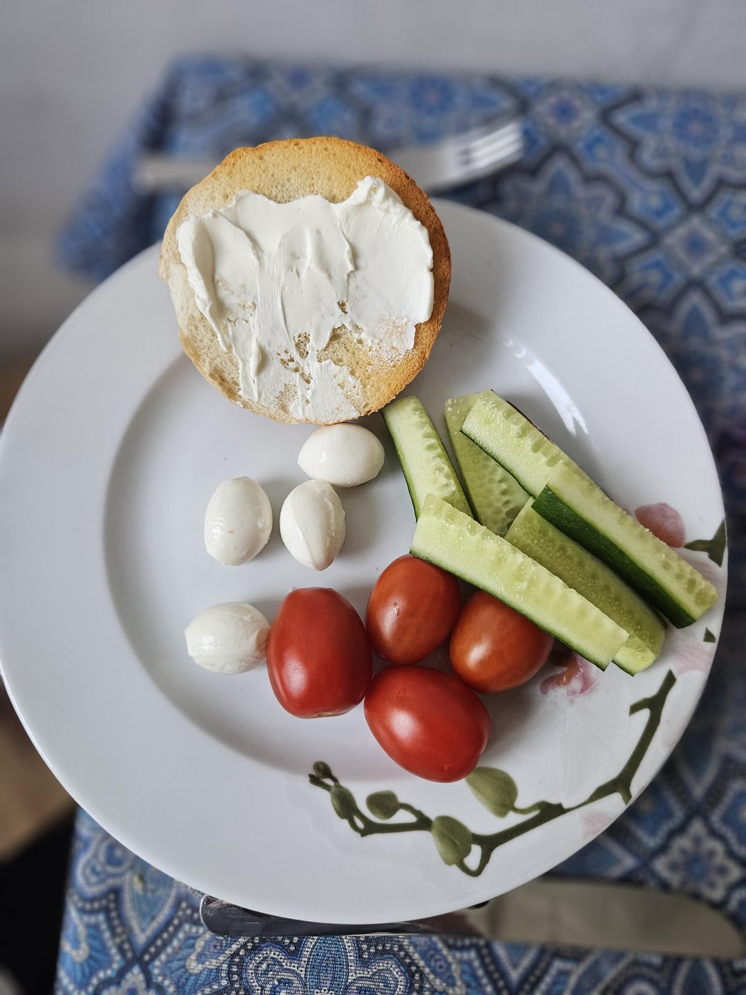 Another simple salad served with toasted kaiser rolls. Dressing just a drizzle of olive oil and some lemon juice. Kiddie version in the second image