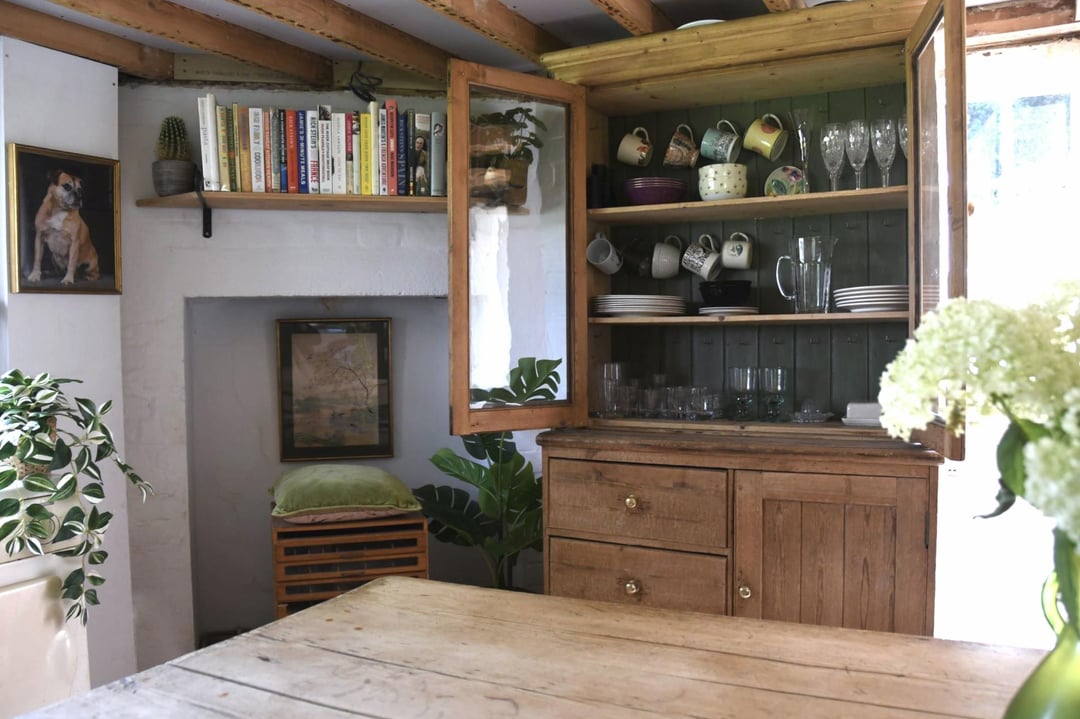 We have been busy building a kitchen. Not finished yet. Kudos to the amazing carpentry skills of my husband, who made all the cupboards. Floor laid by us, was hell. Cabinet hand painted by me. Walls repointed by me. Re wired, re plumbed….